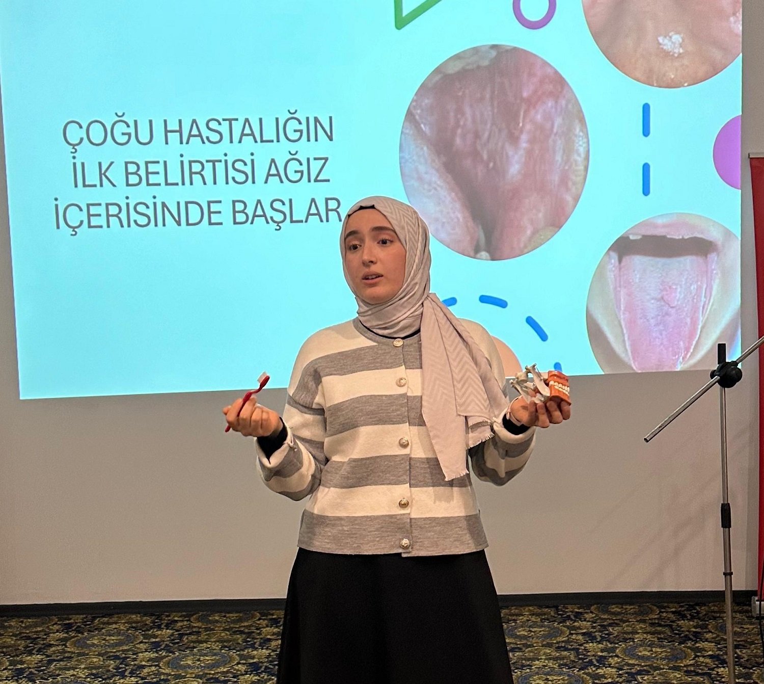 EmexOtel'de gerçekleşen toplantıda Ayşenur Süküt; 'GENEL DİŞ SAĞLIĞI HAKKINDA BİLGİLENDİRME' başlığı ile bilgilerini aktardı.
