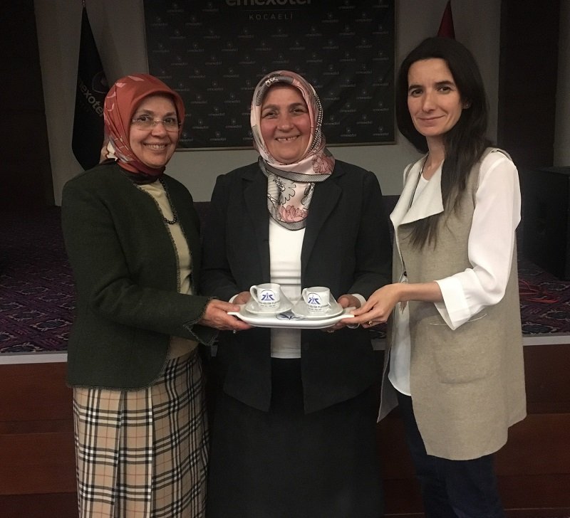 Rahmetli Dr. M. Şefik Postalcıoğlu'nun eşi Zeynep Postalcıoğlu'na Çevre Yüksek Mühendisi Banu Çevikel ve Ressam Vildan Çağlar tarafından, Şükran - Dr. Hasan Dermenci çiftine, Av. Merve - Av. Abdurrahman Kaymak çifti hediyelerini takdim etti.