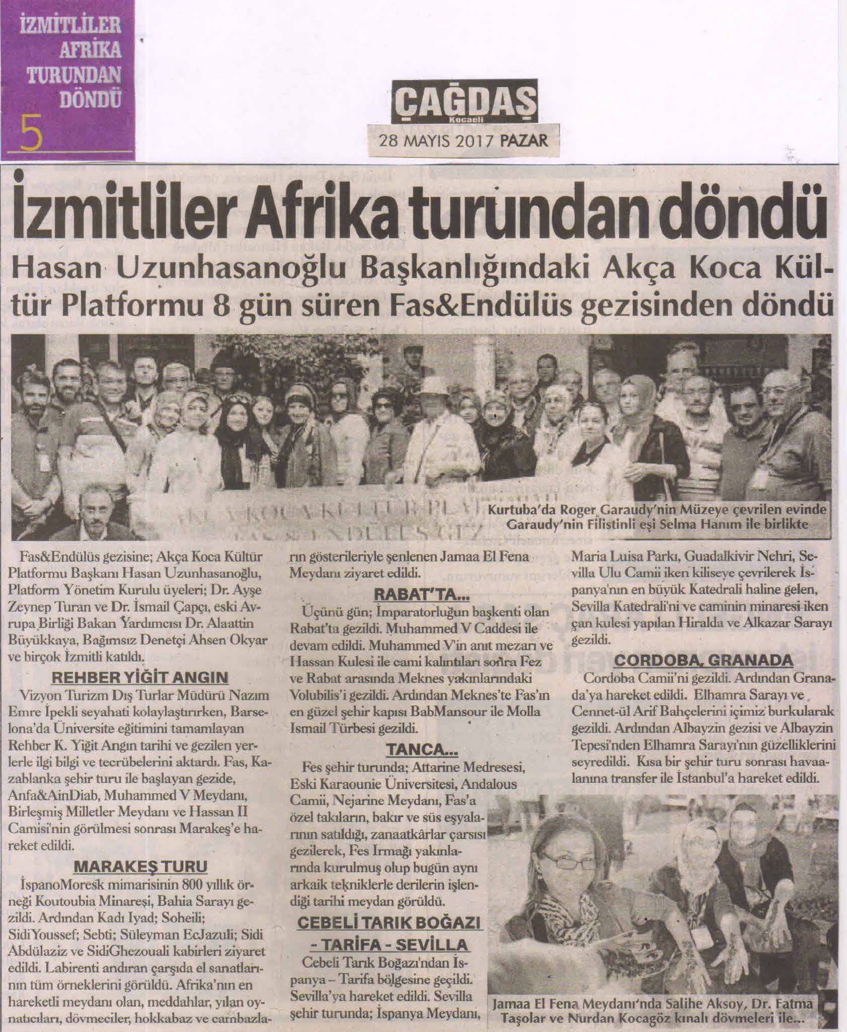 Fas&Endülüs gezisine katılan Akça Koca Kültür Platformu üyeleri; Afrika ve Avrupa'nın en ucunda ve Atlas Okyanusu kenarında gezmenin mutluluğu ile Cebeli Tarık Boğazını da geçmenin yorgunluğu ile Türkiye'ye döndü.