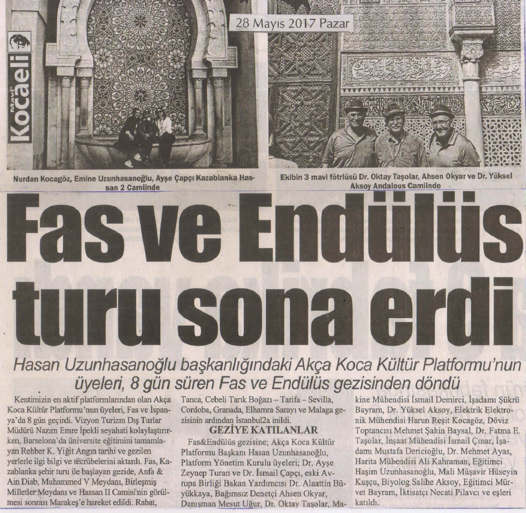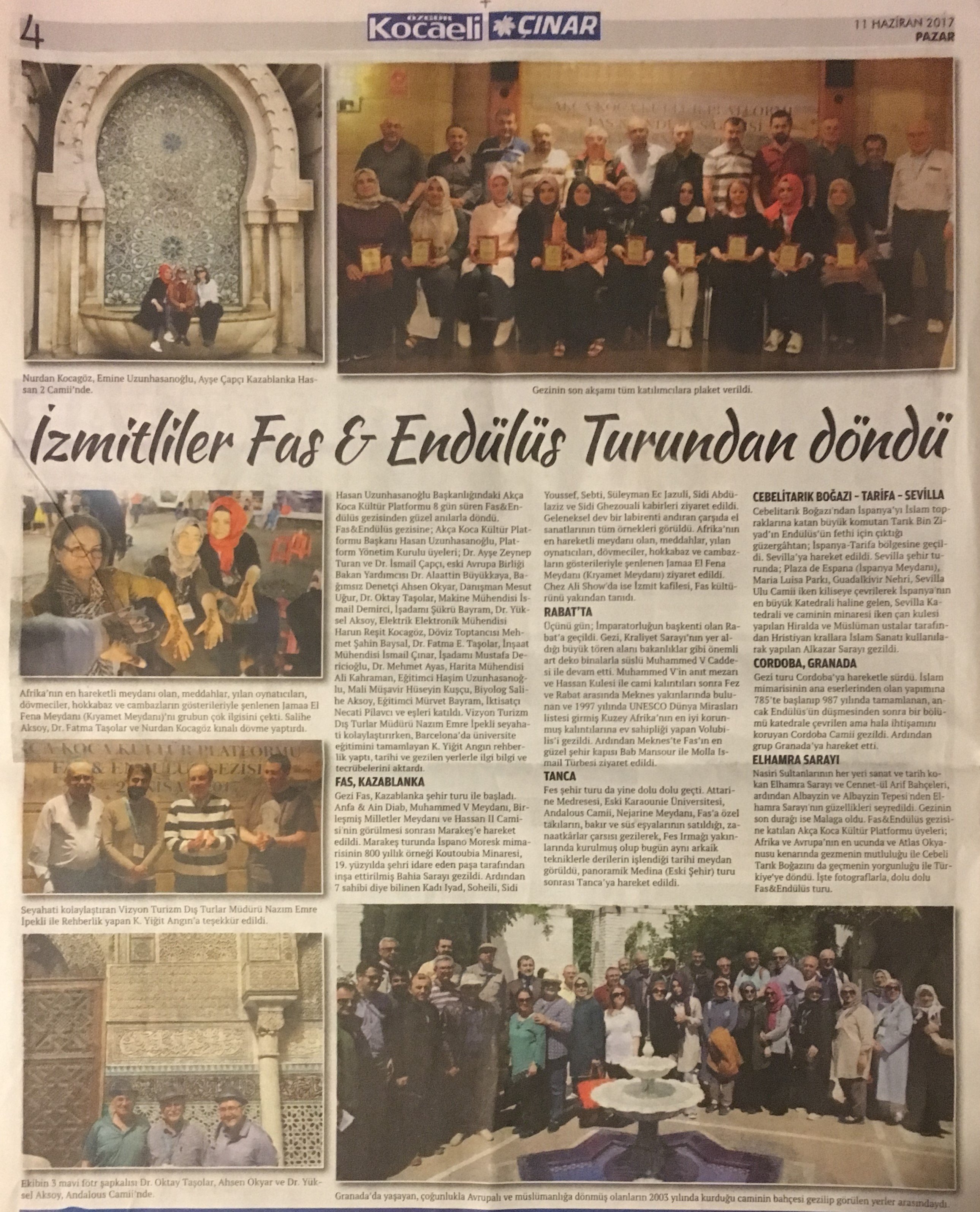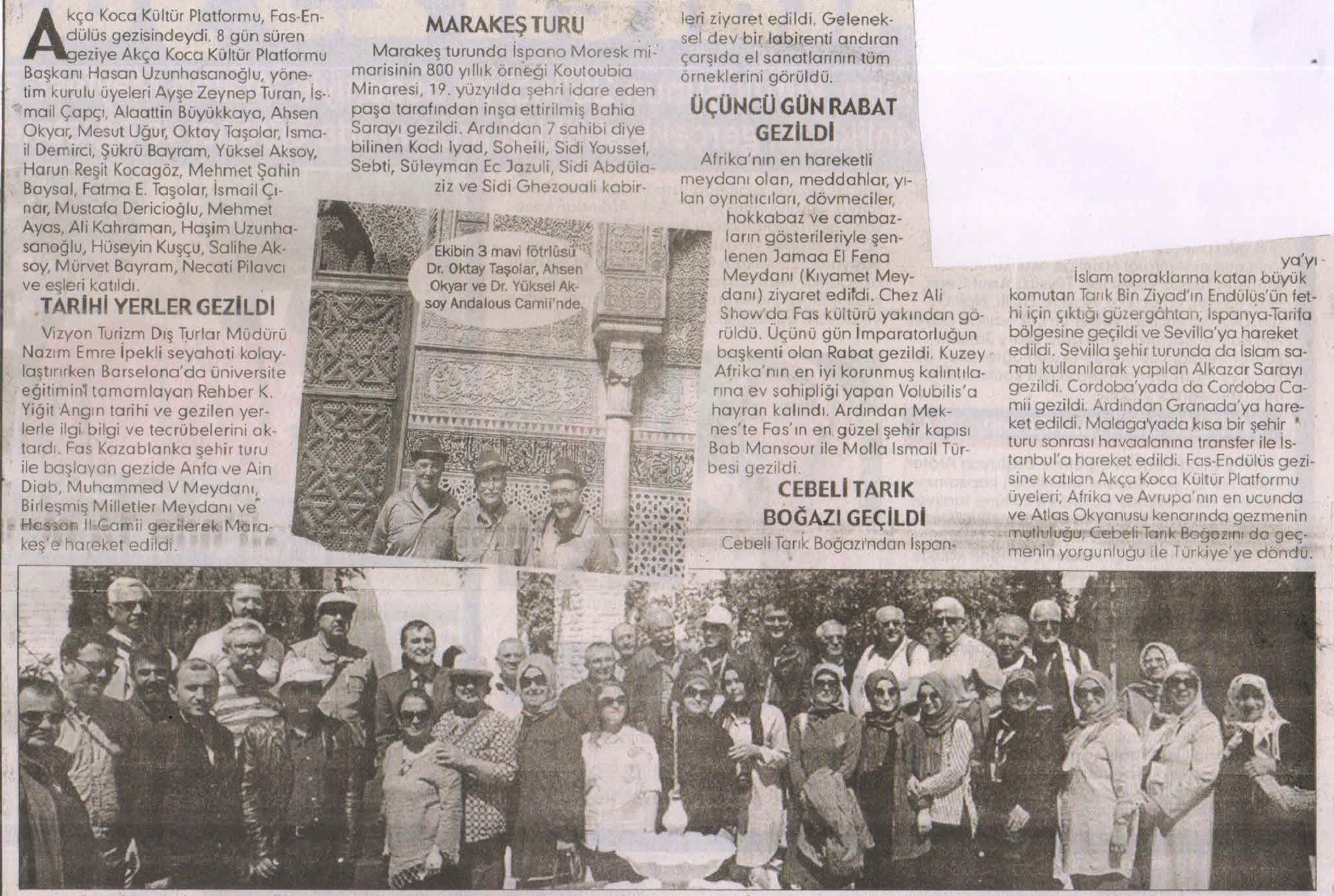 Hasan Uzunhasanoğlu Başkanlığındaki Akça Koca Kültür Platformu 8 gün süren Fas&Endülüs gezisinden döndü.