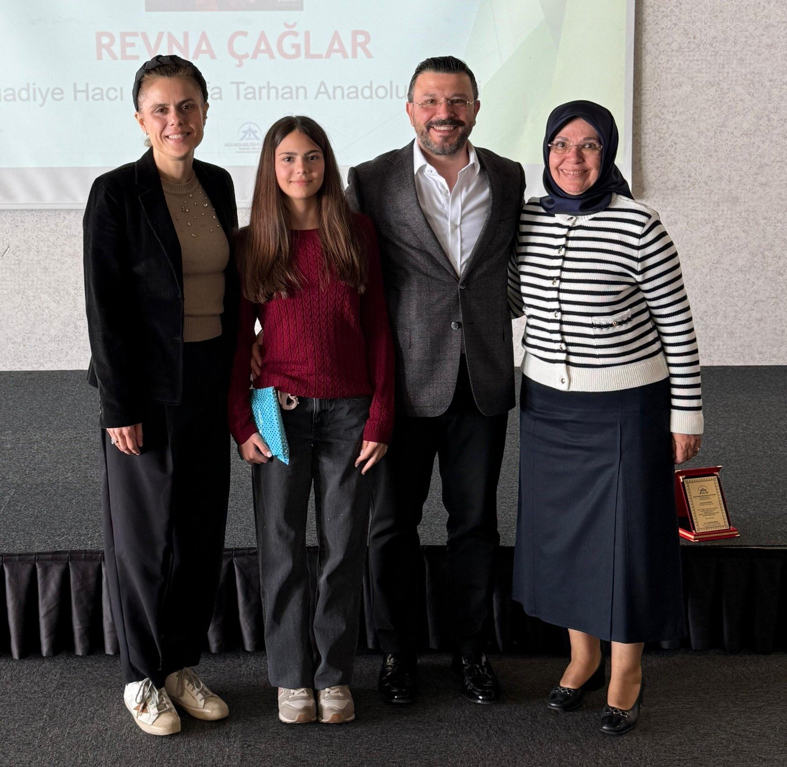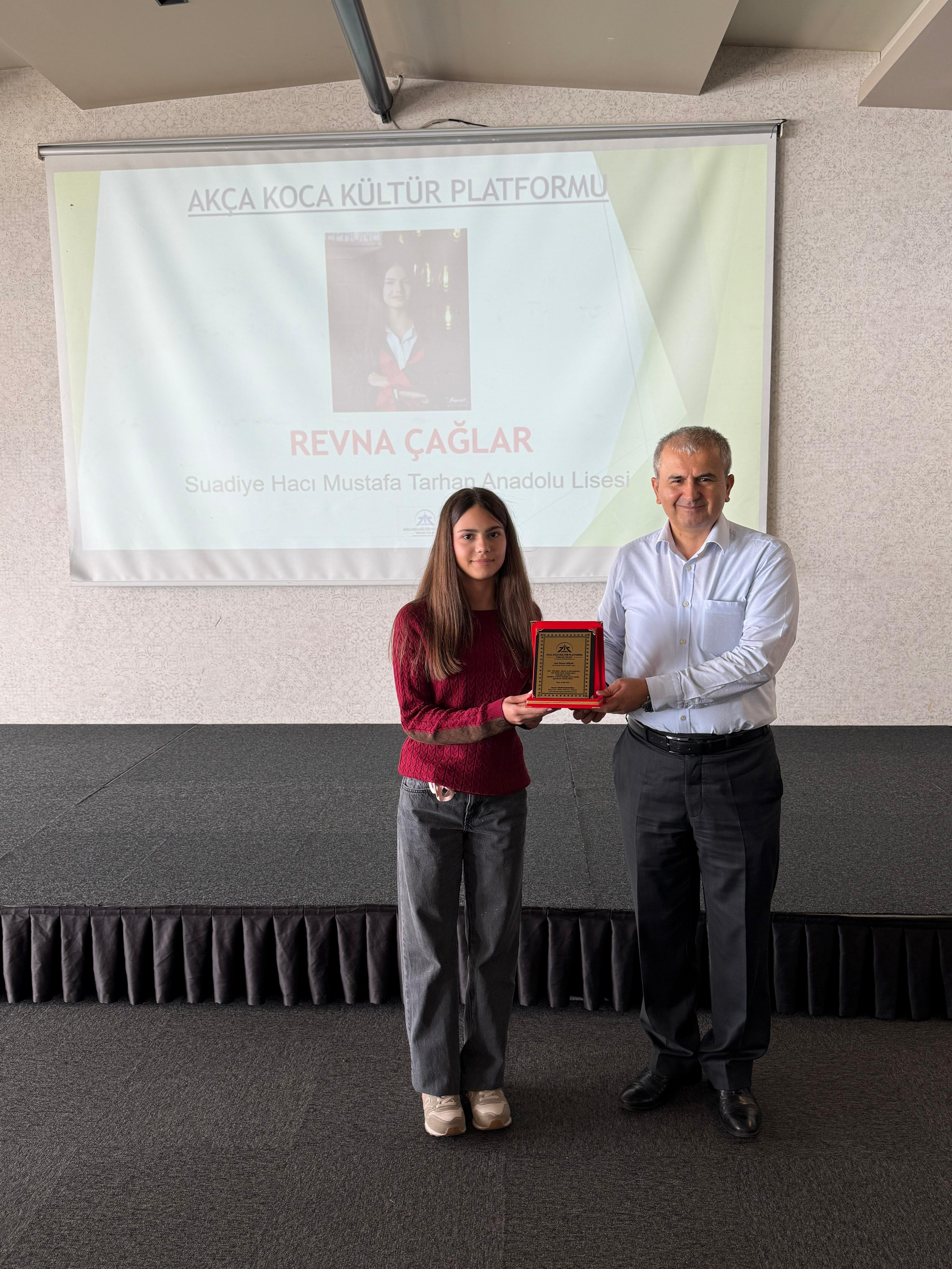 Suadiye Hacı Mustafa Tarhan Anadolu Lisesini kazanan Revna Çağlar'a hediyesini Mehmet Emre Abuşoğlu, plaketini Hematoloji Uzmanı Dr. Hasan Dermenci,