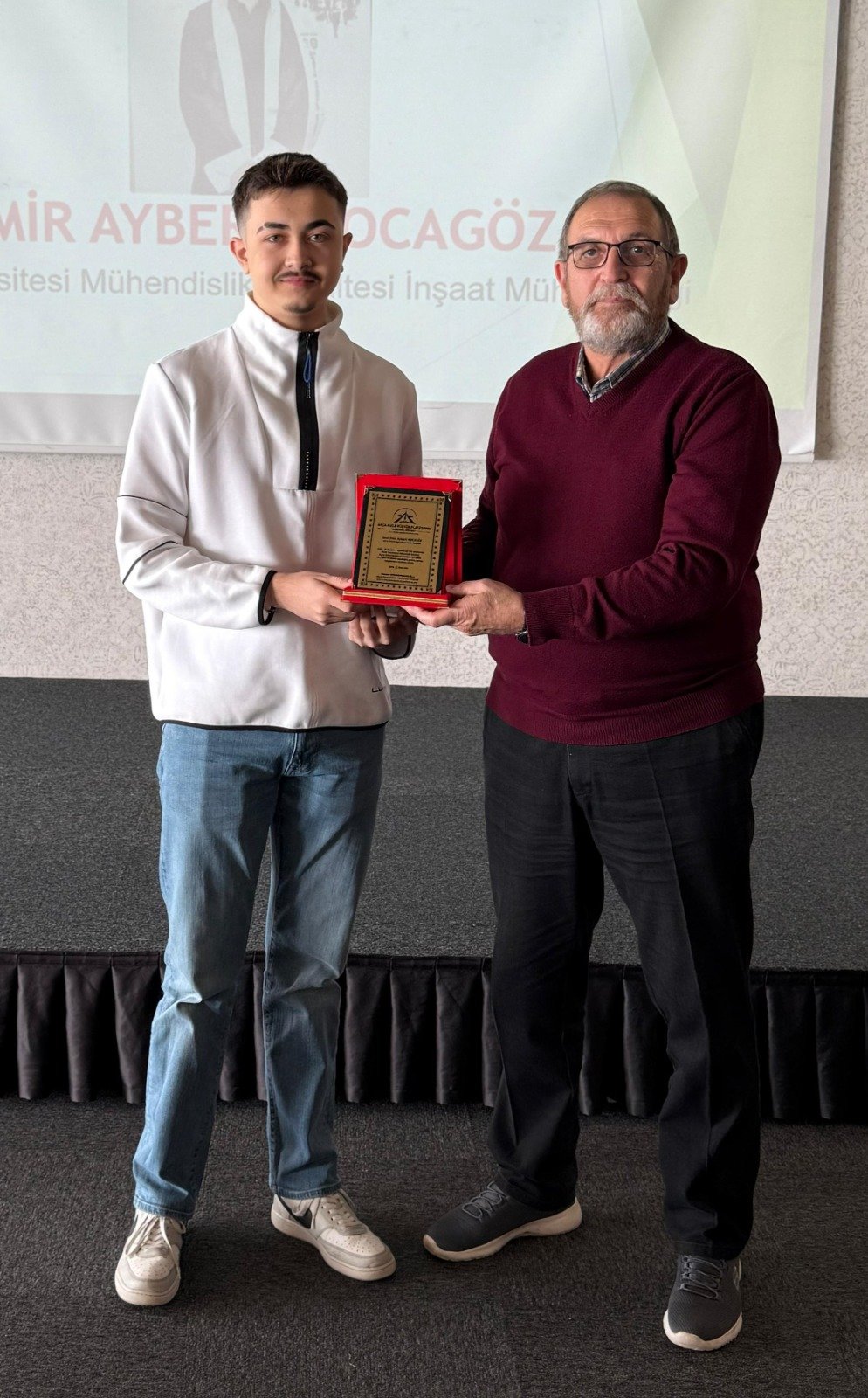 Düzce Üniversitesi Mühendislik Fakültesi İnşaat Mühendisliğini kazanan Emir Ayberk Kocagöz'e hediyesini Platformun Başkan Vekili Dr. İsmail Çapçı, plaketini Yüksek İstişare Kurulu üyesi Eczacı Selçuk Arslan,