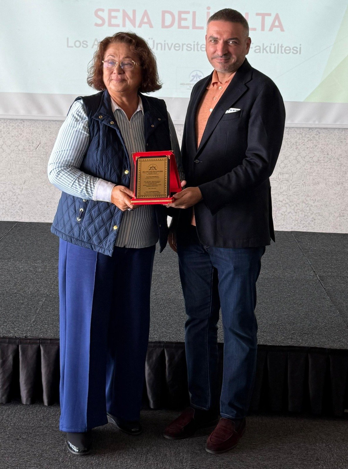 Los Angeles Üniversitesi Tıp Fakültesini kazanan Sena Delibalta adına anneannesi Müjgan Büyükkaya'ya plaketini İgsaş Genel Müdürü İlkay Ünal takdim etti.