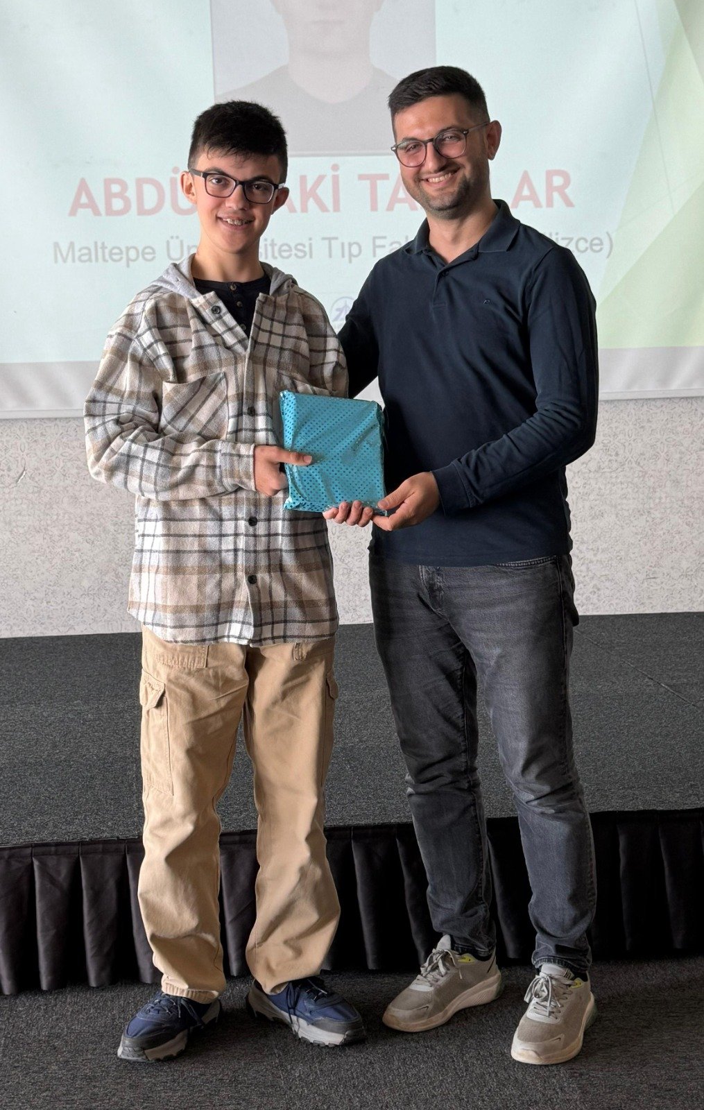 Maltepe Üniversitesi Tıp Fakültesi (İngilizce - % 100 burslu) ni kazanan Abdülbaki Taşolar adına kuzeni Mehmet Yusuf Taşolar'a hediyesini TSE Kocaeli Araç Proje Müdürü Arif Yavuz, plaketini Körfez Marmara Hastanesi Yönetim Kurulu Başkanı Esener Maçil,