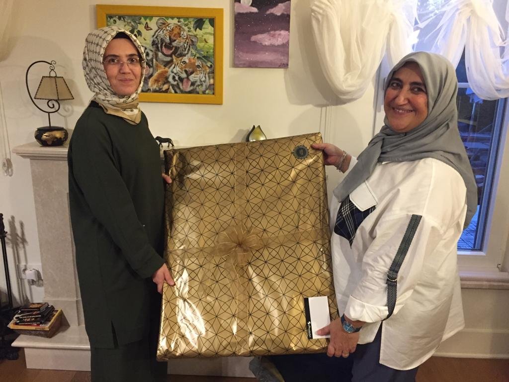 Platformun ziyaret hediyesini, Dr. Fatma Taşolar, ev sahibesi Eğitimci Mürvet Bayram'a ilgi ve ikramları için teşekkür ederek takdim etti.