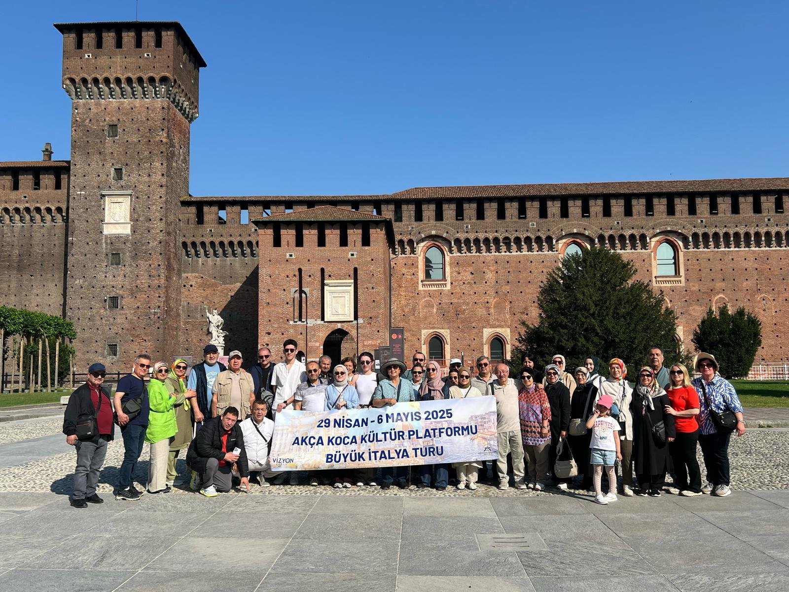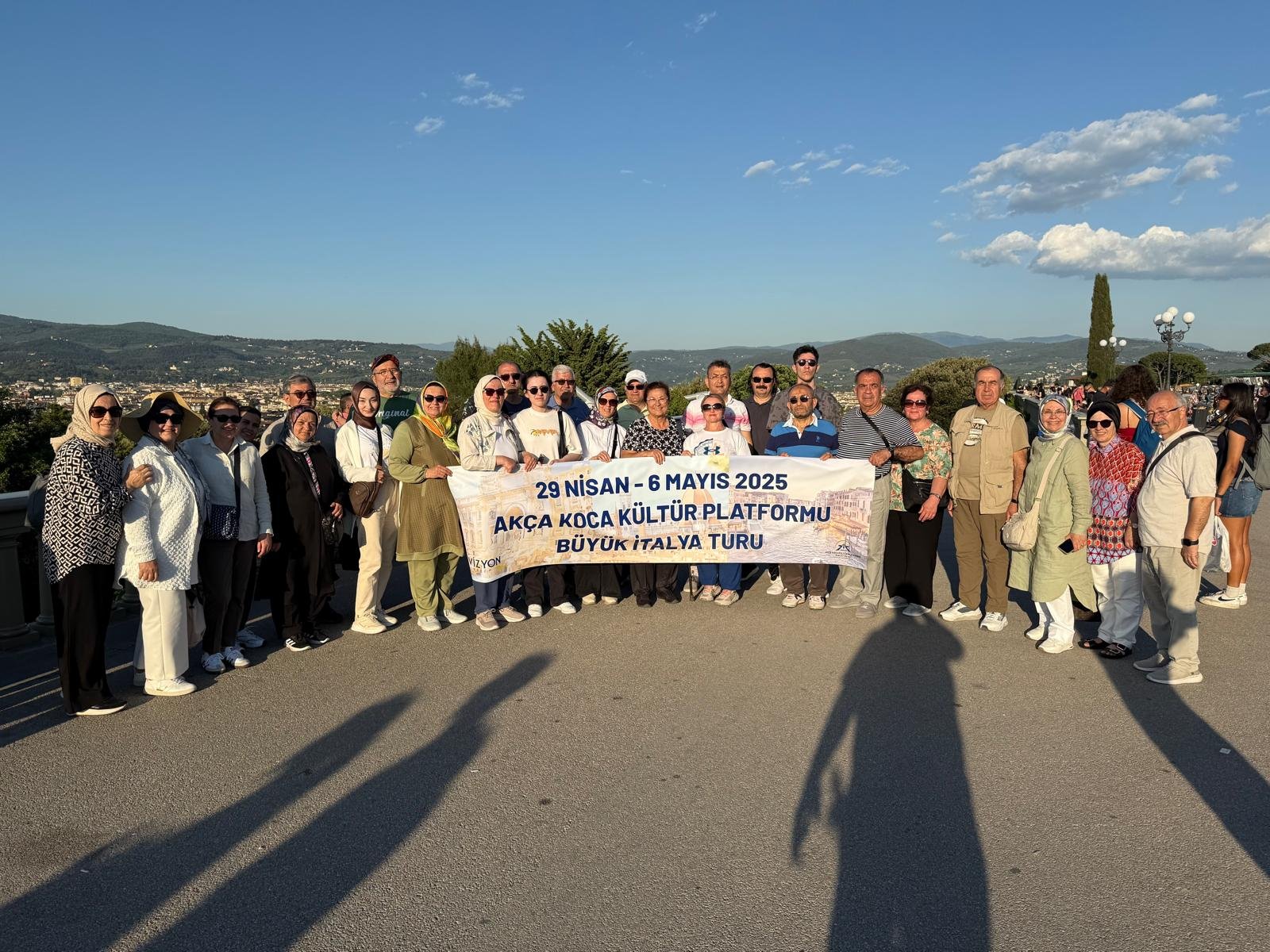 İtalya seyahatine; Akça Koca Kültür Platformu Başkanı Hasan Uzunhasanoğlu, eşi Emine ve kızı Nihal Uzunhasanoğlu, 22-23. dönem İstanbul Milletvekili ve ilk AB Bakan Yardımcısı Dr. Alaattin Büyükkaya ve eşi Müjgan Büyükkaya, Vizyon Tur sahibi Talha Çizmeci, Dr. İsmail Çapçı ve eşi Ayşe Çapçı, Avukat Hamdiye Sönmezoğlu, Hematoloji uzmanı Dr. Hasan Dermenci ve eşi Şükran Dermenci, Sabriye Baysal, Orman Mühendisi İşmail Şan eşi avukat Gülseren, çocukları Eylül Nisa- Eren Cevdet Şan, avukat Nermin Aksüt, Özel Kültür Okulları sahibi Ali Aydemir ve eşi Muazzez Aydemir, İş insanı Metin Özler ve eşi Gülhan Özler, Makine Müh. Çetin Mut ve eşi Elvan Mut, KOVİAD Başkanı Harun Reşit Kocagöz ve eşi Nurdan Kocagöz, İş İnsanı Şükrü Bayram ve eşi Mürvet Bayram, avukat Büşra Özen, mali müşavir Derya Yağmur Sözer ve annesi Deniz Sözer, tarihçi Haşim Uzunhasanoğlu ve kızları Dr. Elif Banu – Zeynep Begüm Uzunhasanoğlu, İş insanı Necati Büyükkaya ve eşi Hilal Büyükkaya, Ressam Vildan Çağlar, İş İnsanı Mustafa Dericioğlu ve eşi Fatime Dericioğlu, KTÜ Tıp Fakültesi e. Öğretim üyesi Prof. Dr. Orhan Değer ve eşi Ayşe Değer, İş İnsanı Necati Pilavcı ve eşi Huriye Pilavcı, Vizyon Turizm Yurt İçi ve Dışı Turlar Müdürü Emre İpekli katıldı.
