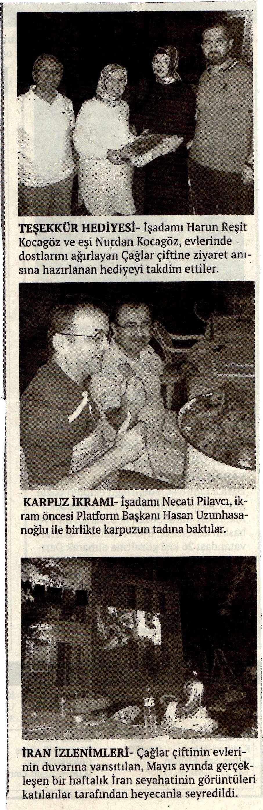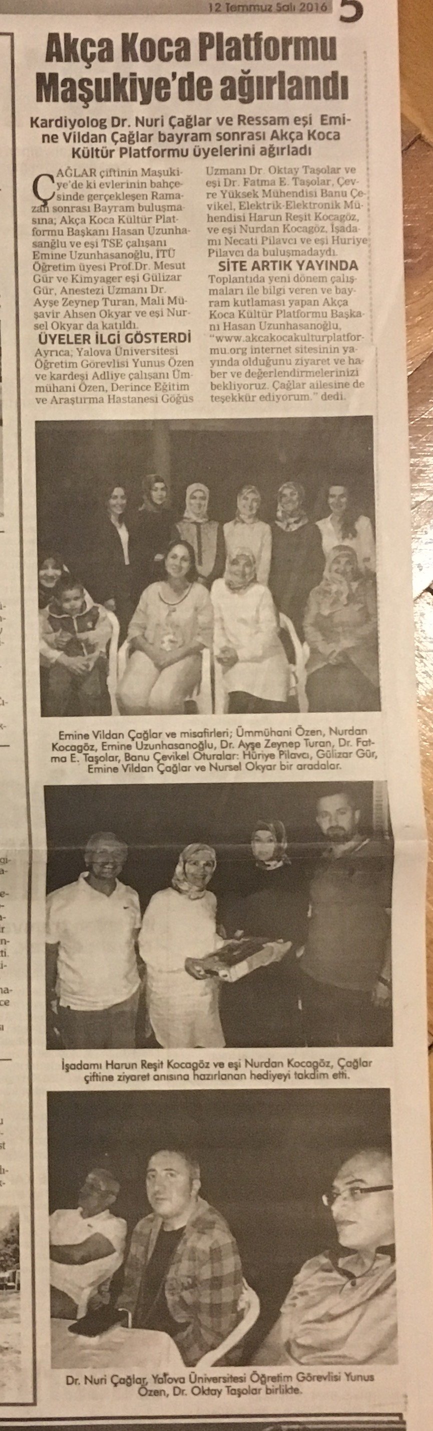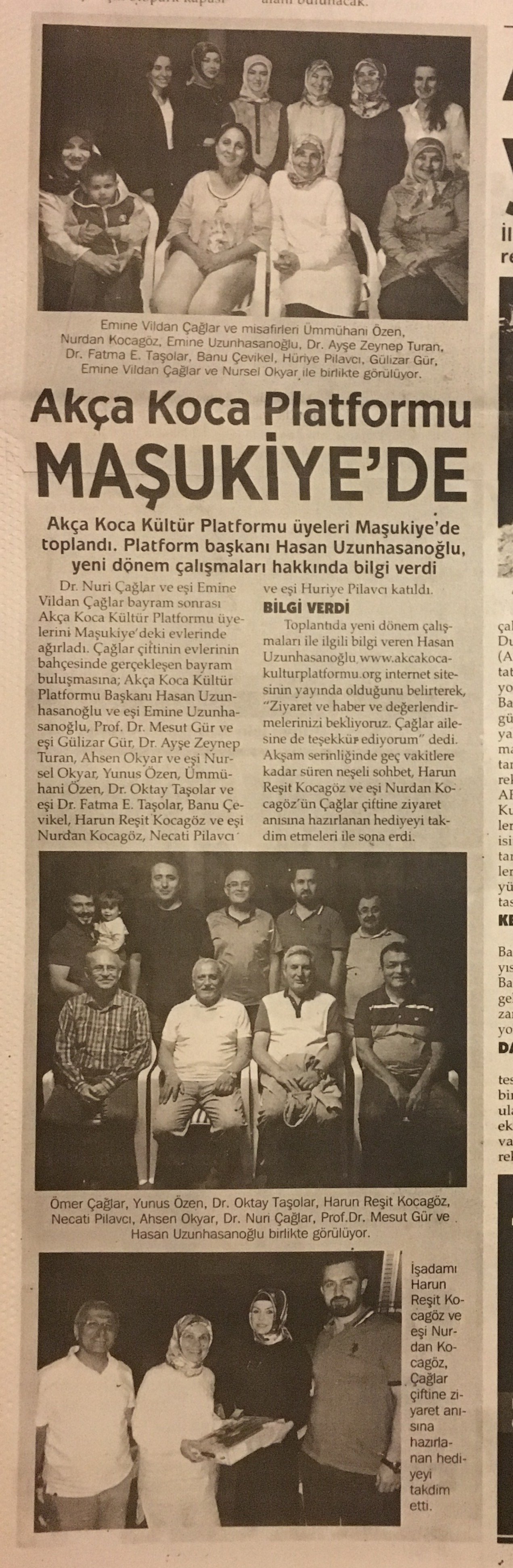 Toplantıda yeni dönem çalışmaları ile bilgi veren ve Bayram kutlaması yapan Akça Koca Kültür Platformu Başkanı Hasan Uzunhasanoğlu 'www.akcakocakulturplatformu.org internet sitesinin yayında olduğunu ziyaret ve haber ve değerlendirmelerinizi bekliyoruz. Çağlar ailesine de teşekkür ediyorum.' dedi.