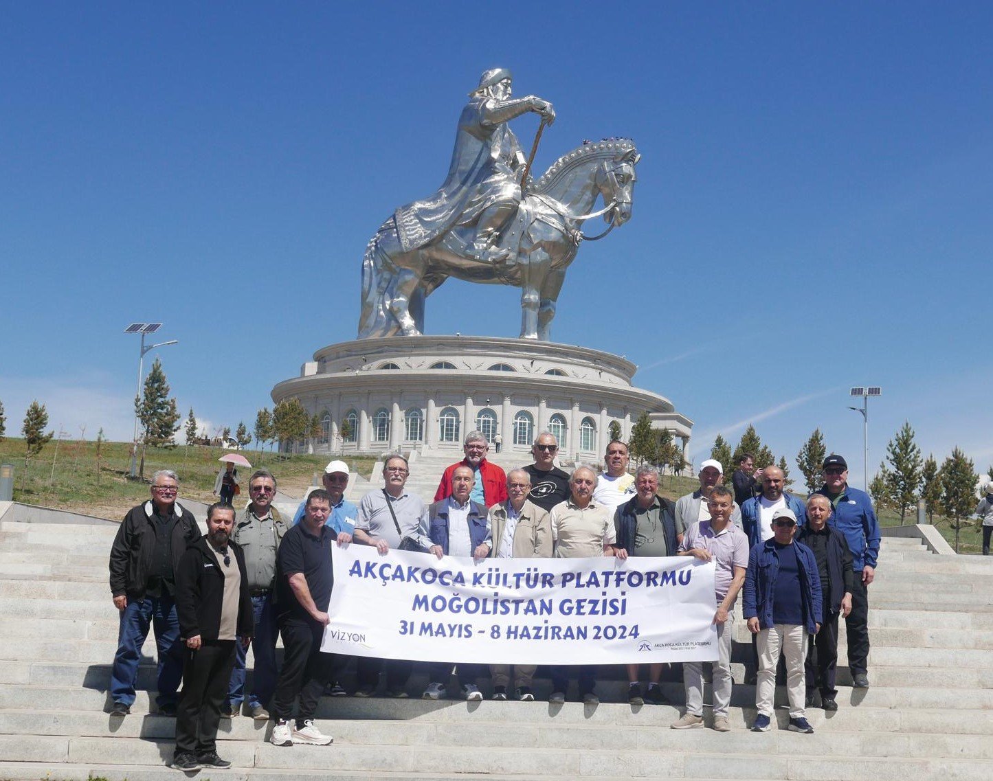 Vizyon Tur Yurt Dışı Turlar Müdürü Nazım Emre İpekli ile Moğol Dashnyam rehberliğindeki 9 günlük Moğolistan seyahatine; E. Avrupa Birliği Bakan Yardımcısı Dr. Alaattin Büyükkaya, Akça Koca Kültür Platformu Başkanı Ziraat Müh. Hasan Uzunhasanoğlu, Yüksek İstişare Kurulu Başkanı Ahsen Okyar, İş insanı Şükrü Bayram, KBB Kırsal Tarım ve Aromatik Bitkiler İl koordinatörü Abdullah Köktürk, Eğitimci - İş İnsanı Ali Korkmaz, KOVİAD Başkanı Harun Reşit Kocagöz, İnşaat Y. Müh. Ekrem Genco Günay, Makine Mühendisi Çetin Mut, Harita Müh. Ali Kahraman, Elektronik Müh. Taner Şanlı, Ecz. Selçuk Arslan, İş insanı Ferit Yağız, Sigorta Risk Koordinatörü Necati Büyükkaya, İş insanı Doğan Yücel, Dr. Halil İbrahim Kahraman, Girişimcilik Danışmanı Serhat Duyar, Turizmci Naki Burak Alpay, Ecz. Erdal Güzel ve İş insanı Cengiz Argat katıldı.