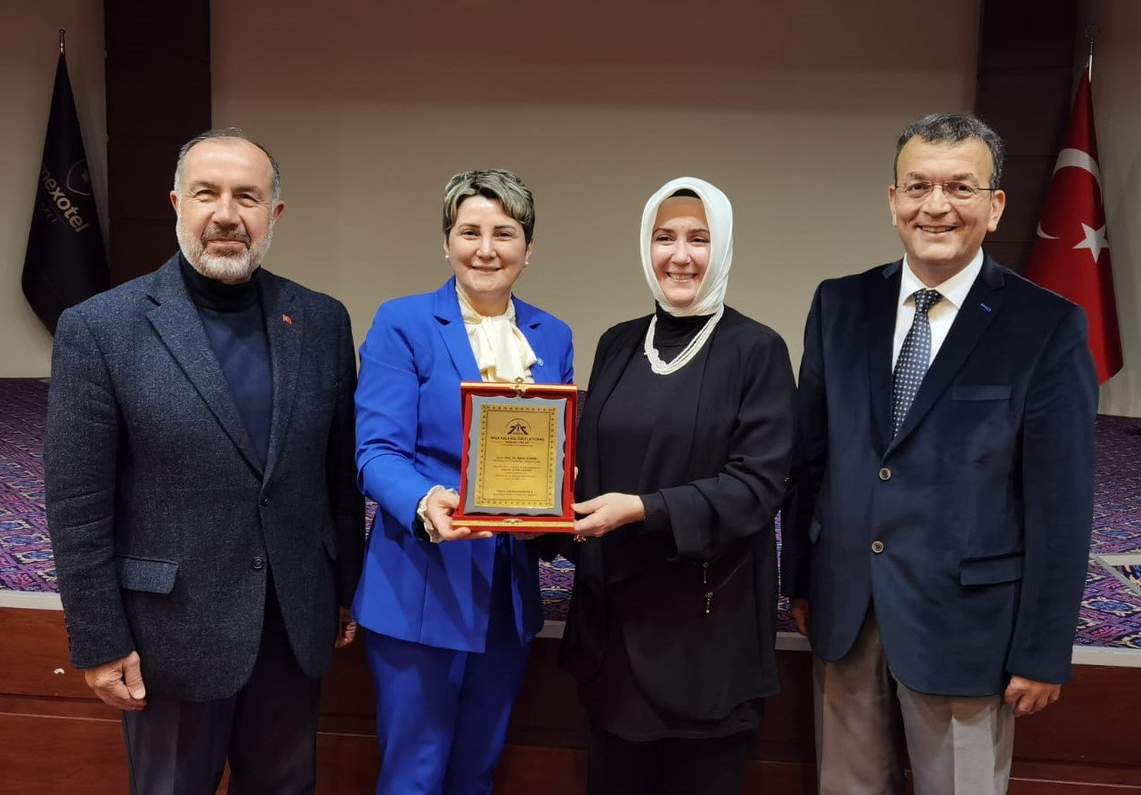 Konuşması sonrasında Doç. Dr. Banu Gürer'e; e. Avrupa Birliği Bakan Yardımcısı Dr. Alaattin Büyükkaya, İYİ Parti Vekil aday adayı Dr. Pelin Coştur Filiz ve Başkan Hasan Uzunhasanoğlu tarafından plaketi takdim edildi.