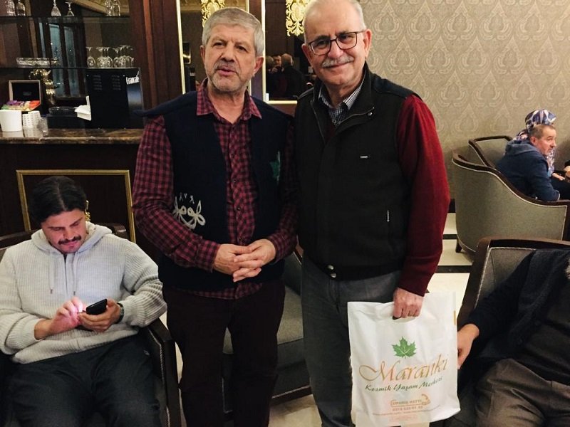 Hotelde Ali Coşkun, Prof.Dr. Ahmet Maranki hoca ve arkadaşları ile birlikte sohbet etme imkanı buldular.