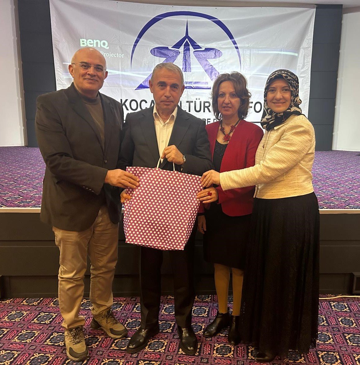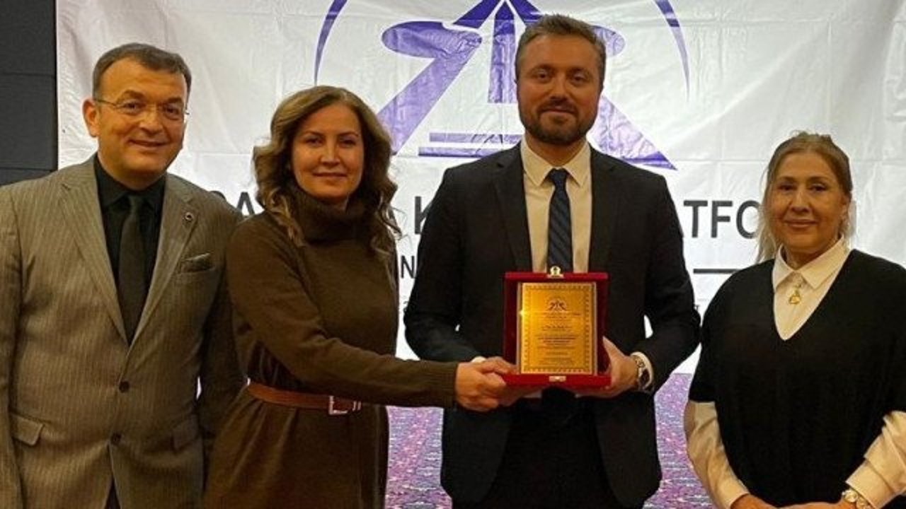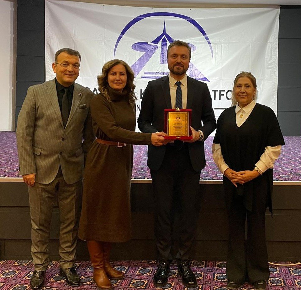 KOVİAD Kocaeli Vizyoner İş İnsanları Derneği Başkanı Harun Reşit Kocagöz Platformun hediyesini, Turizmci Ayşegül Karakadılar ve Eğitimci Meryem Aybike Sinan da başarılı sunumu için tebrik ederek plaketini Doç. Dr. Burak Acar'a takdim etti.