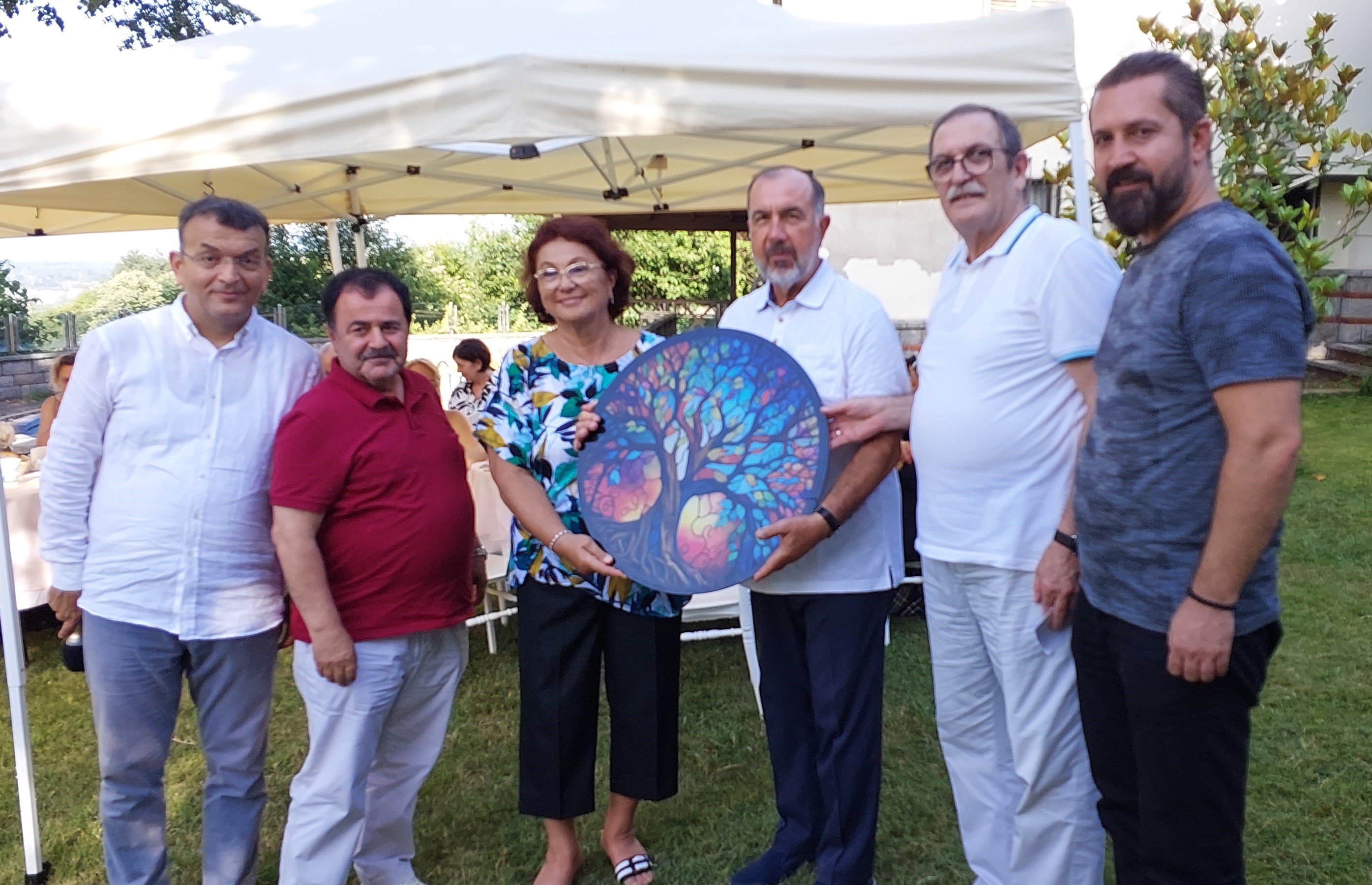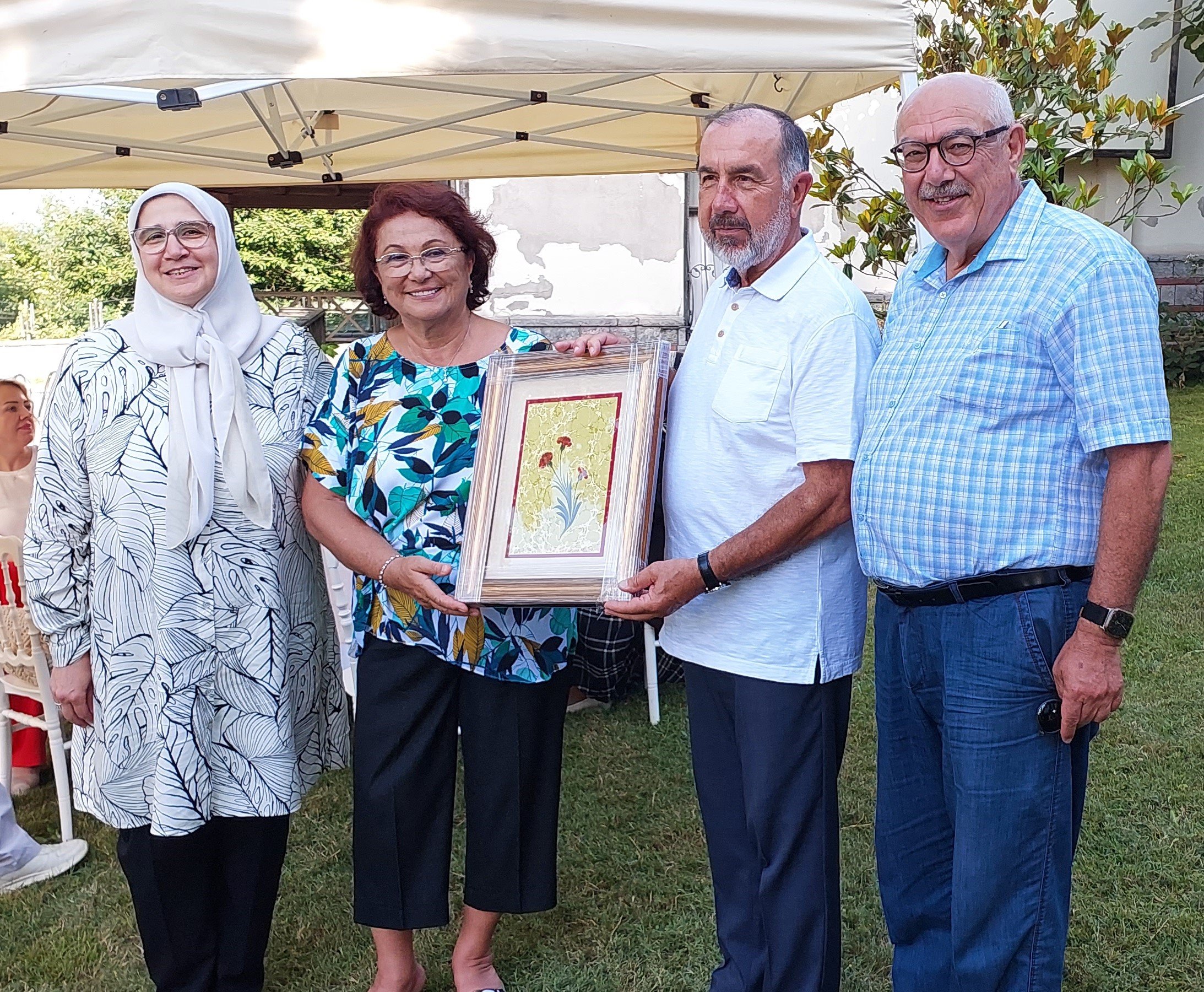 Eczacı Selçuk Arslan tarafından uzunca ve teferruatlı şekilde anlatılan Hayat Ağacı tablosu hediye edildi.