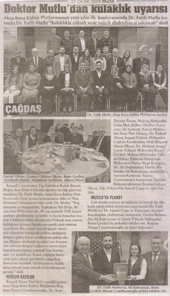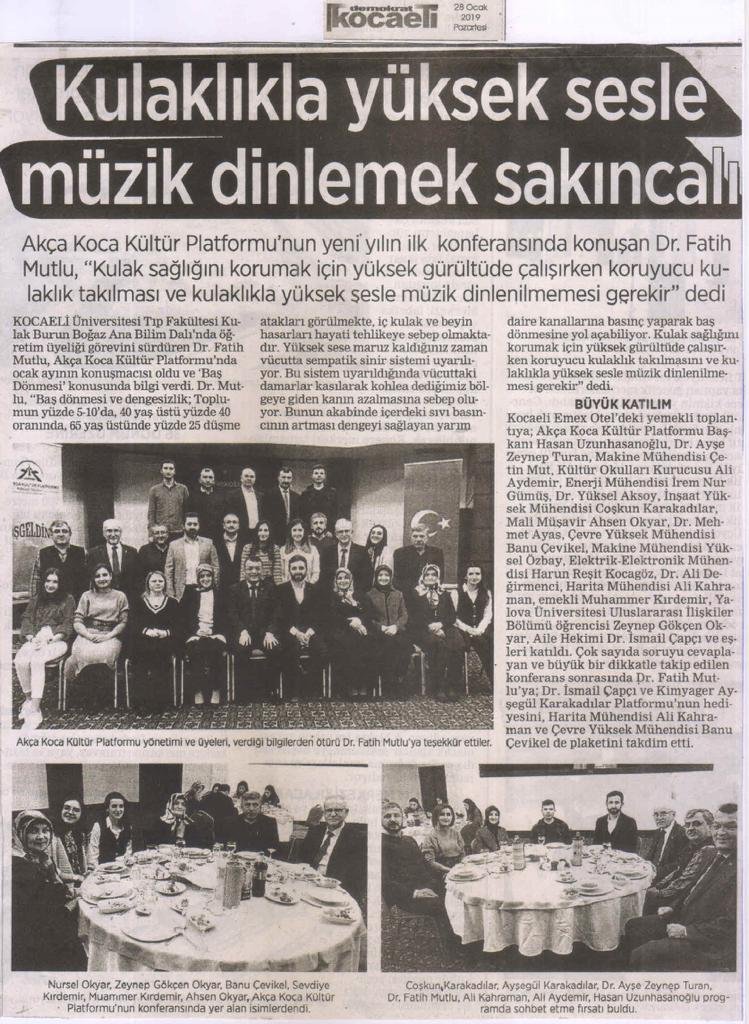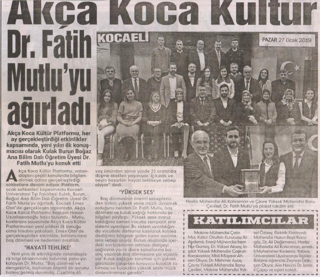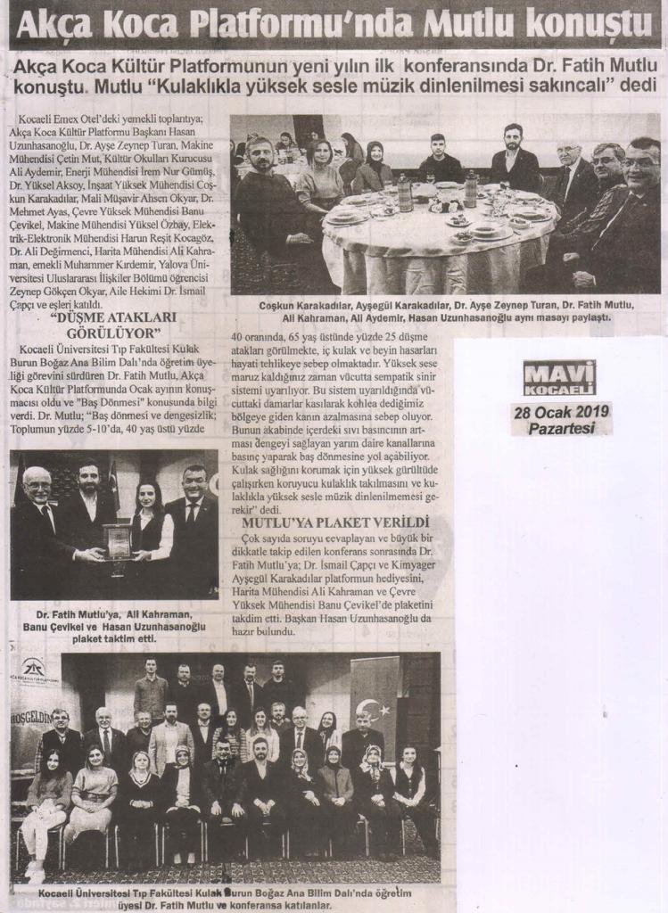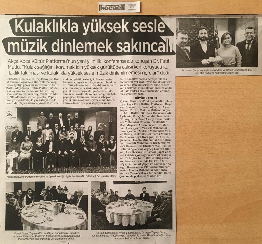 Kocaeli Üniversitesi Tıp Fakültesi Kulak Burun Boğaz Ana Bilim Dalı'nda öğretim üyeliği görevini sürdüren Dr. Fatih Mutlu, Akça Koca Kültür Platformunda Ocak ayının konuşmacısı oldu ve 'Baş Dönmesi' konusunda bilgi verdi.