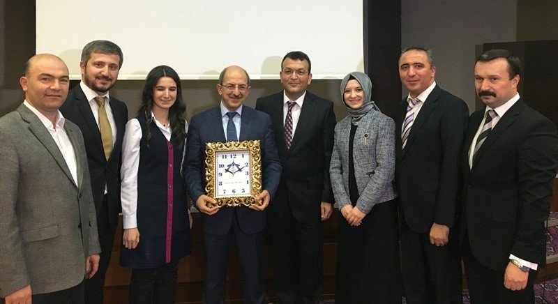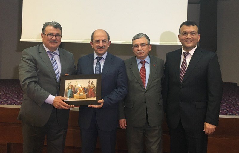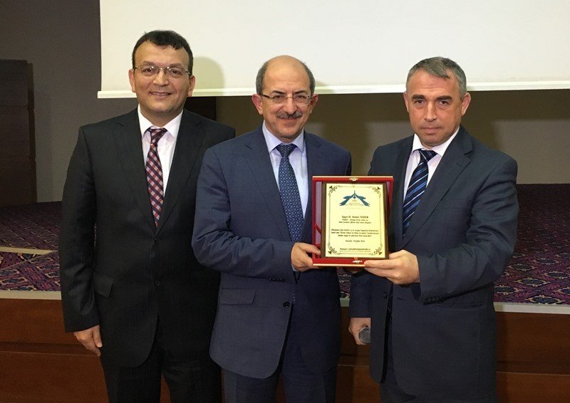 Kocaeli Kent Konseyi Başkanı Abdullah Köktürk, Kocaeli'de de üstün zekalı çocuklarla ilgili yapılan çalışmaları anlatarak Dr. Tekden'e teşekkür etti ve Akça Koca Gazi tablosu hediye etti.