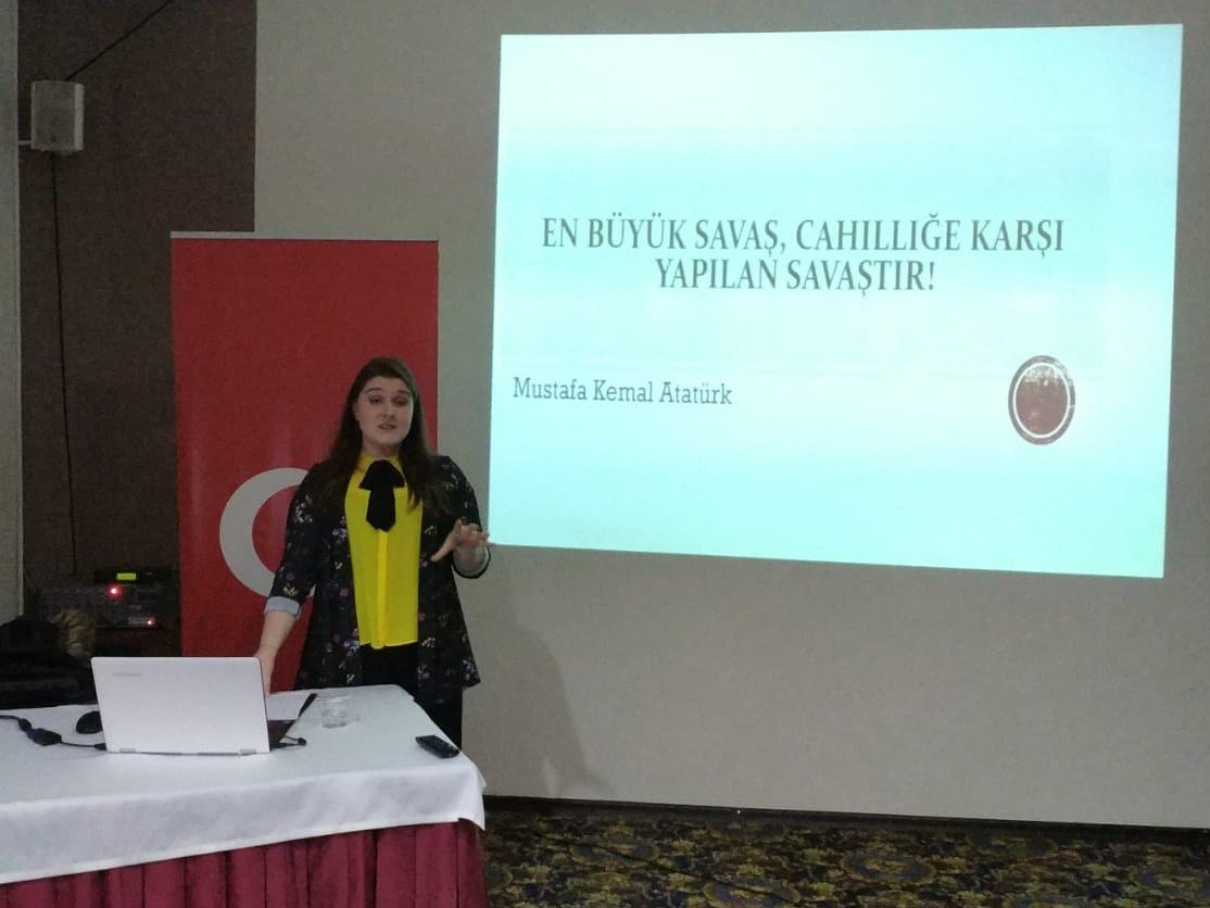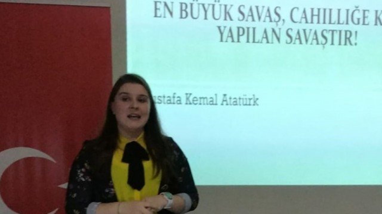 Akça Koca Kültür Platformu Gençlerle Başbaşa Programının onbeşincisinde; Kocaeli Üniversitesi İngiliz Dili ve Edebiyatı 2. sınıf öğrencisi Ece Akdeniz, 'En Büyük Savaş, Cahilliğe Karşı Yapılan Savaştır!' konusunda bilgi verdi.