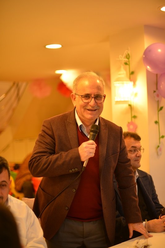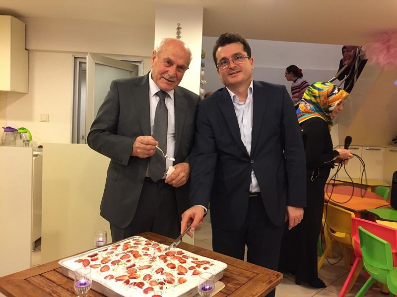 Prof. Dr. Orhan Akınoğlu, eşi İzmitli Emine Akınoğlu ve babası emekli eğitimci Nevzat Akınoğlu ile birlikte hazırlanan pastayı kesti. Toplantıya katılanlar Prof. Akınoğlu'nu tebrik ederek, hediyeler de takdim etti.