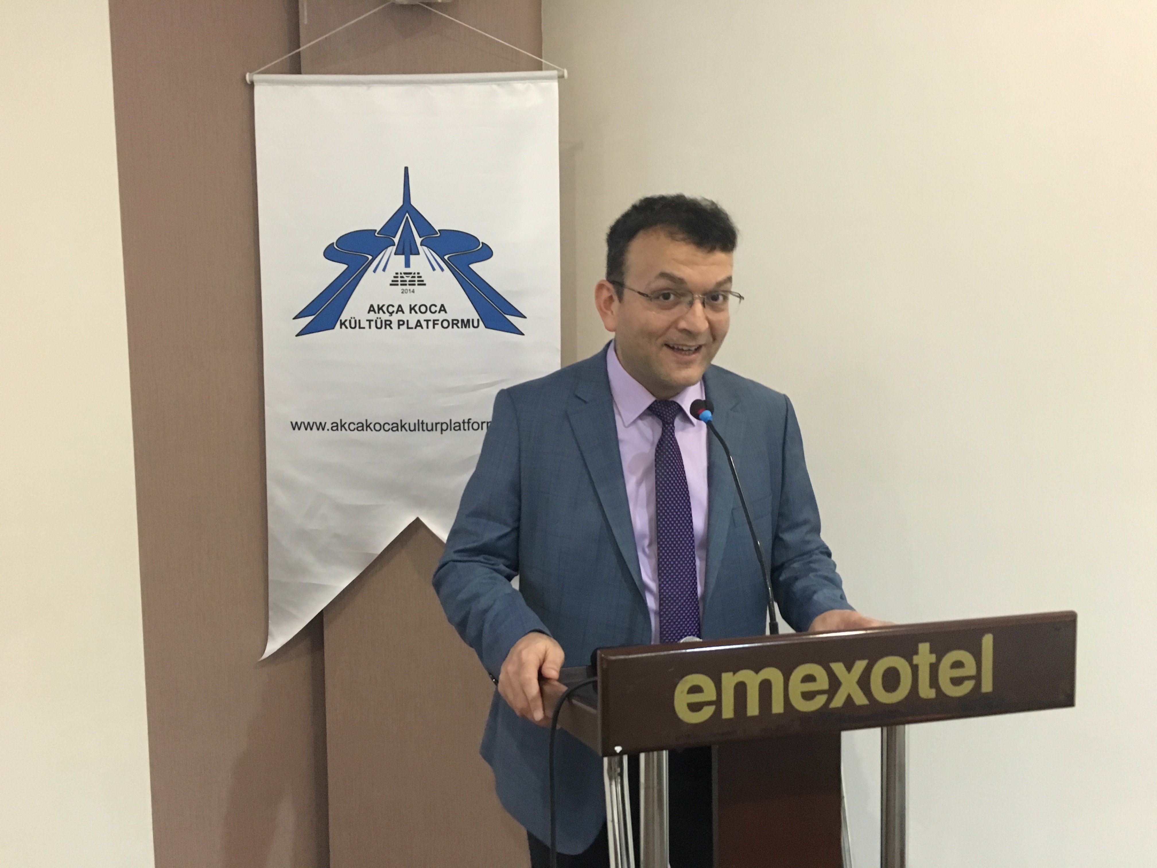 Akça Koca Platformu Başkan Vekili Dr. İsmail Çapçı Başkanlık sistemi uygulamaları ile ilgili çok sayıdaki soruyu cevaplayan Emre Bursalıoğlu'nu tebrik ederek plaketini, Platform Yönetim Kurulu üyesi Dr. Ayşe Zeynep Turan'da saat hediyesini takdim etti.