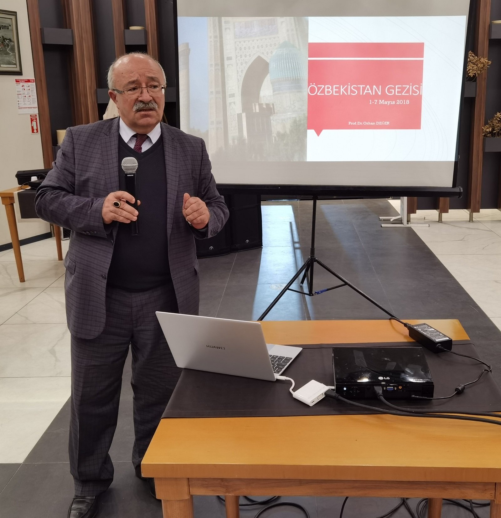 Karadeniz Teknik Üniversitesi Tıp Fakültesi öğretim üyesi Prof. Dr. Orhan Değer, Platformun 2018 yılında gerçekleşen Özbekistan Gezisi notlarını sundu. Hediyesini de Yönetim Kurulu üyeleri; Çetin Mut, Dr. Yunus Özen ve Coşkun Karakadılar verdi.