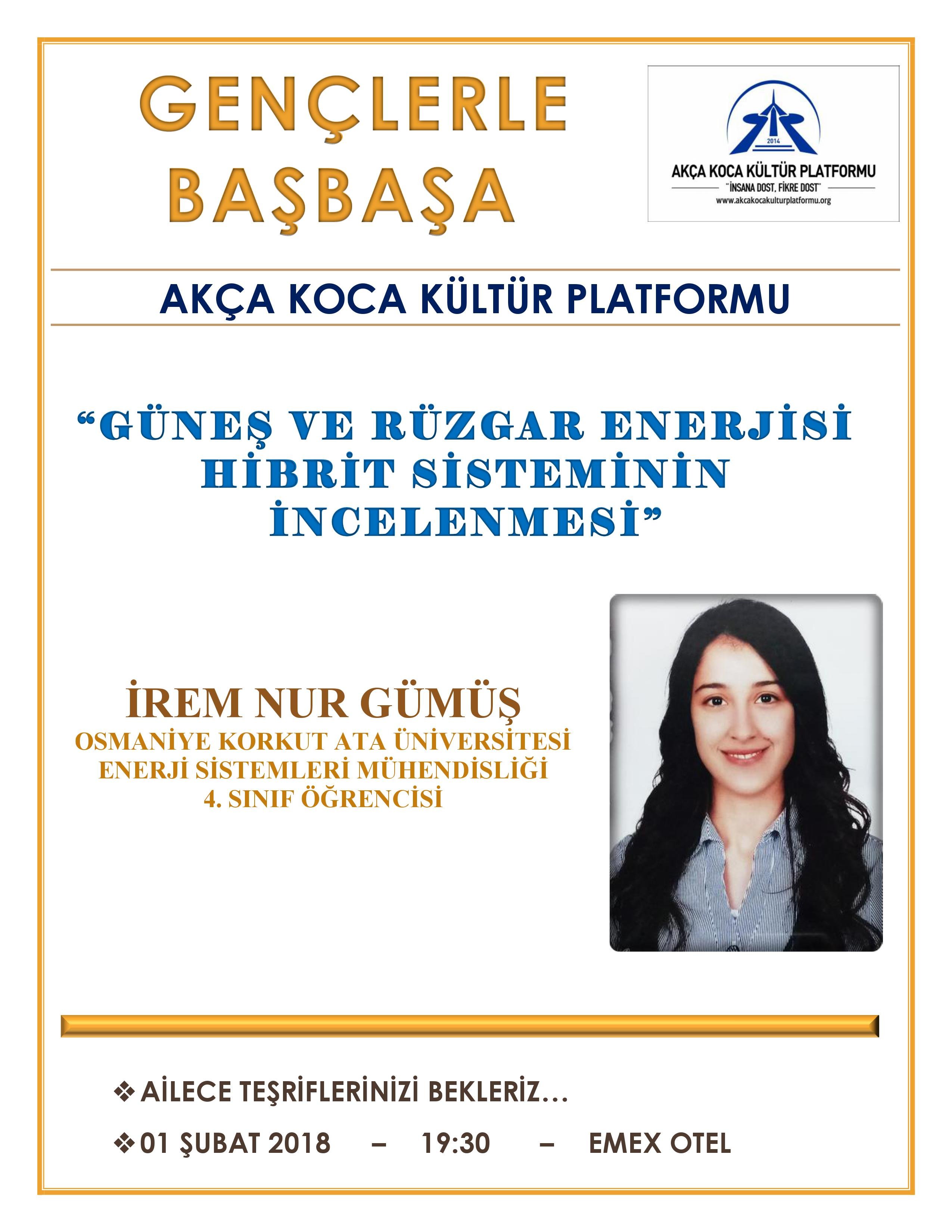 Akça Koca Kültür Platformu, 11.Gençlerle Baş Başa programında İrem Nur Gümüş'ü dinledi.