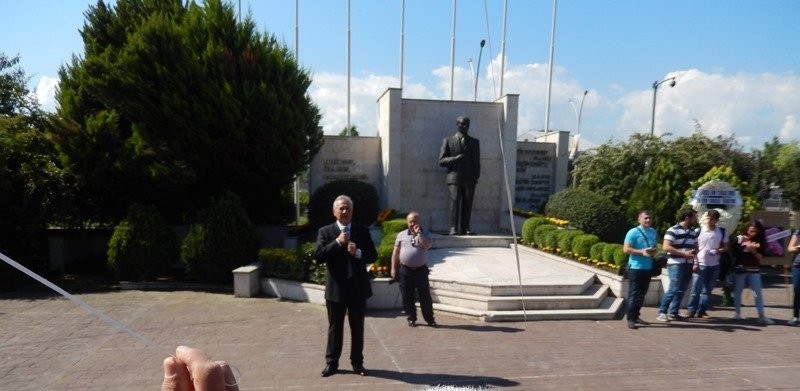 Atatürk anıtına çelenk konuldu. Bir dakikalık saygı duruşunun sonrasında önce İstiklal Marşı, ardından da Kırım Marşı okundu. Başkan Vefa İbrahim Aracı, 'Akmescit'te anma törenine izin verilmedi. Soma madencileri için 2 kez arayıp taziye dileklerinde bulunan Putin 70 yıl önce sürgün ettikleri Kırımlılar için acı anma törenlerini bile yasakladı. Bu Rus'un ikiyüzlülüğüdür' dedi.
