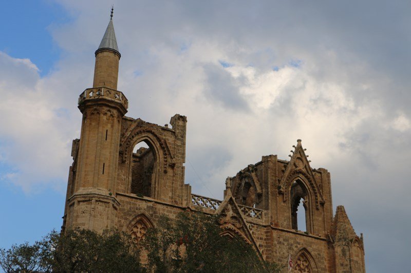 Osmanlı'nın Mağusa kuşatması sırasında top atışlarıyla hayli zarar gördüğünden, kentin ele geçirildiği 1 Ağustos 1571 tarihinden sonra Sinan Paşa'nın emriyle, mihrap ve minber eklenerek camiye çevrilmiş ve Lala Mustafa Paşa'nın 17 Ağustos 1571 Cuma günü II. Sultan Selim'in adına burada okuttuğu hutbeyle ibadete açılmıştır. Caminin kuzey batı köşesindeki minare, II. Selim'in 1 Mayıs 1572 tarihli buyruğuyla yapılmıştır. Yıldırım isabetiyle tehlike arz ettiğinden 1930 yılında orijinal çan kulesine kadar yıkılarak yerine şimdiki 110 veya 115 ayak yüksekliğindeki minare yapılmıştır.