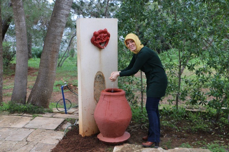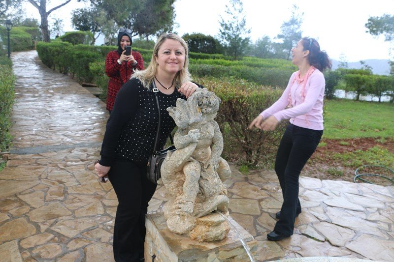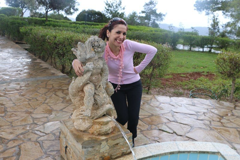 Ayrıca bahçede de bir aslanlı çeşme mevcut, bu çeşmeden devamlı şarap akmaktaymış zamanında ve misafirleri için özel olarak dizayn edilmiş.