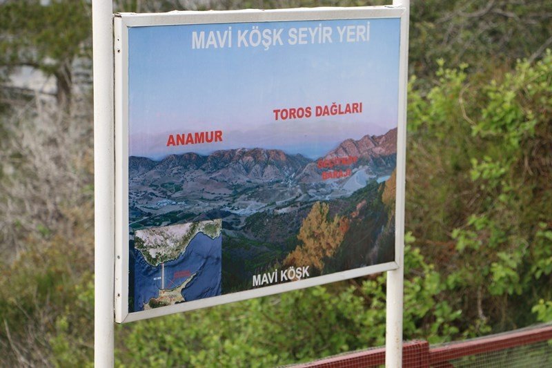 Mavi Köşk'ün, gözleri üzerine kilitleyen özelliği ise, nereden bakılırsa bakılsın asla görülememesi ancak köşkten bakıldığı zaman her yerin çok net görüldüğü bir alana inşa edilmiş olmasıdır. Köşk, çevre dağların en tepelerinden bile görülememektedir. Ayrıca denizden de hiç bir şekilde silüeti bile seçilemeyen bu Mavi Köşk'ün içinden bakıldığında her şey çok net olarak görülebilmektedir.