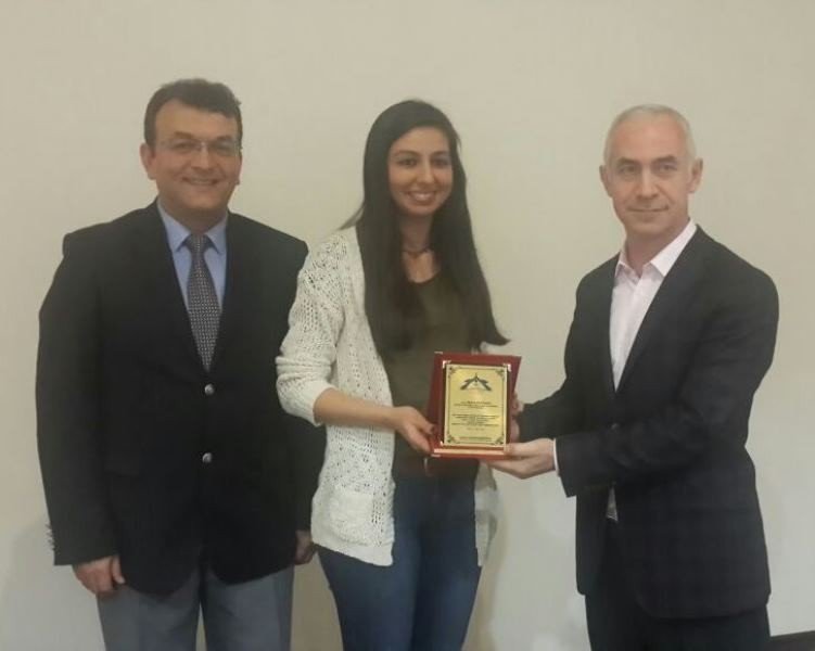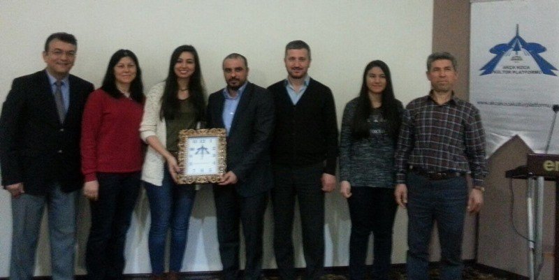 KOÜ Sosyal Bilimler Enstitüsü Müdürü Prof.Dr. Yusuf Bayraktutan 'Birey ve Empati Temelli İletişim' ile ilgili çok sayıdaki soruyu cevaplayan Merve Sarıkaya'yı tebrik ederek plaketini, Platform Yönetim Kurulu üyesi İnşaat Yüksek Mühendisi Coşkun Karakadılar ile Tekstilci İşadamı Serhat Duyar da birlikte saat hediyesini takdim etti.