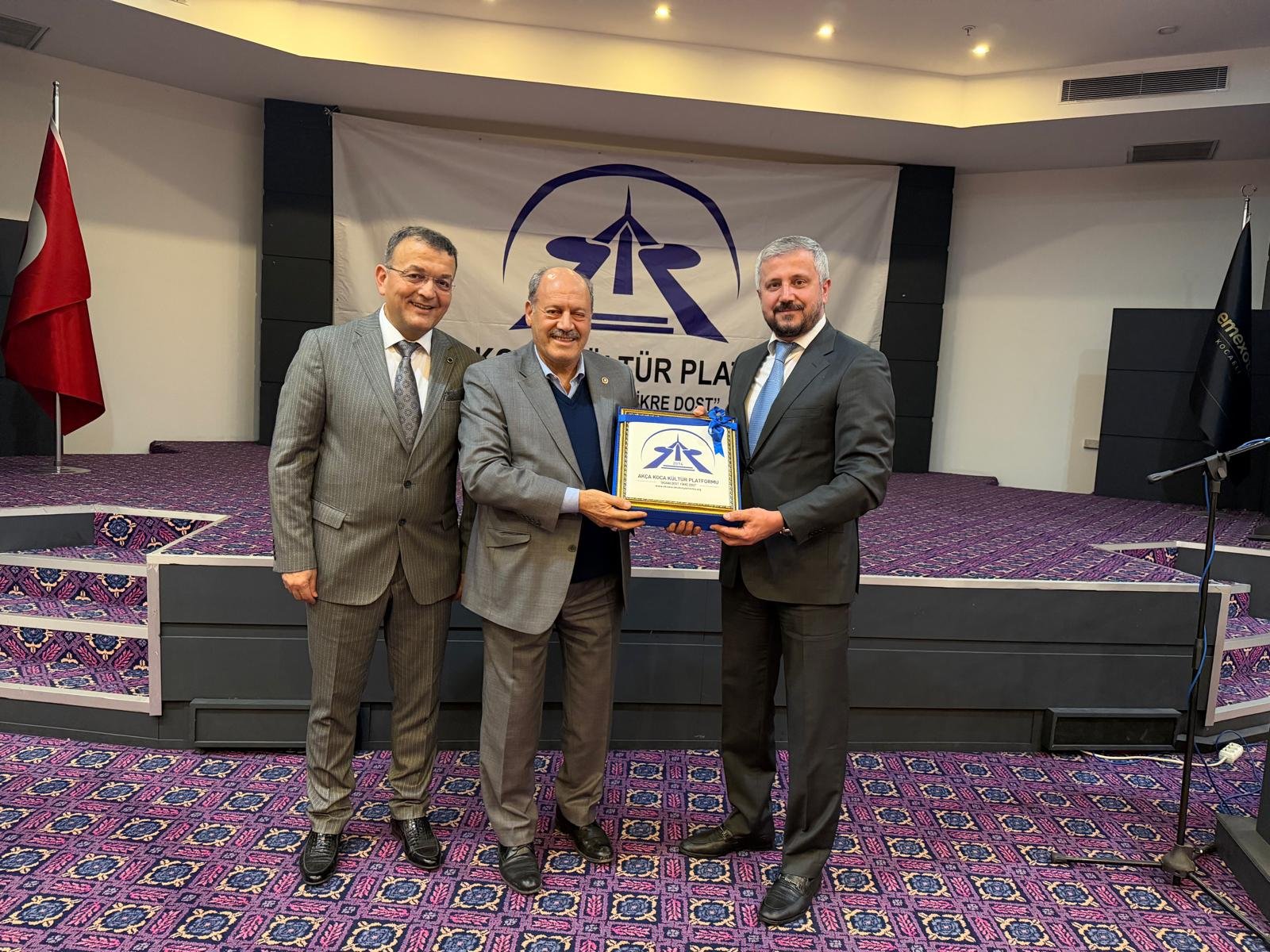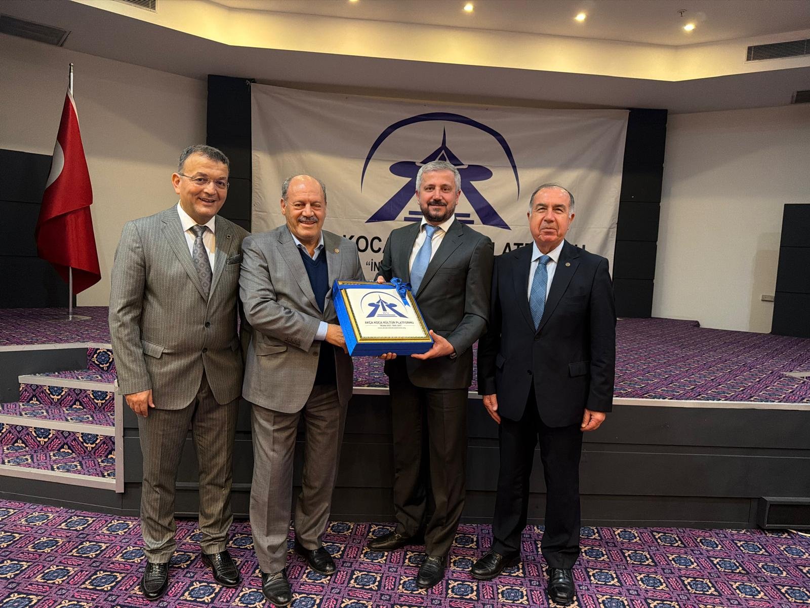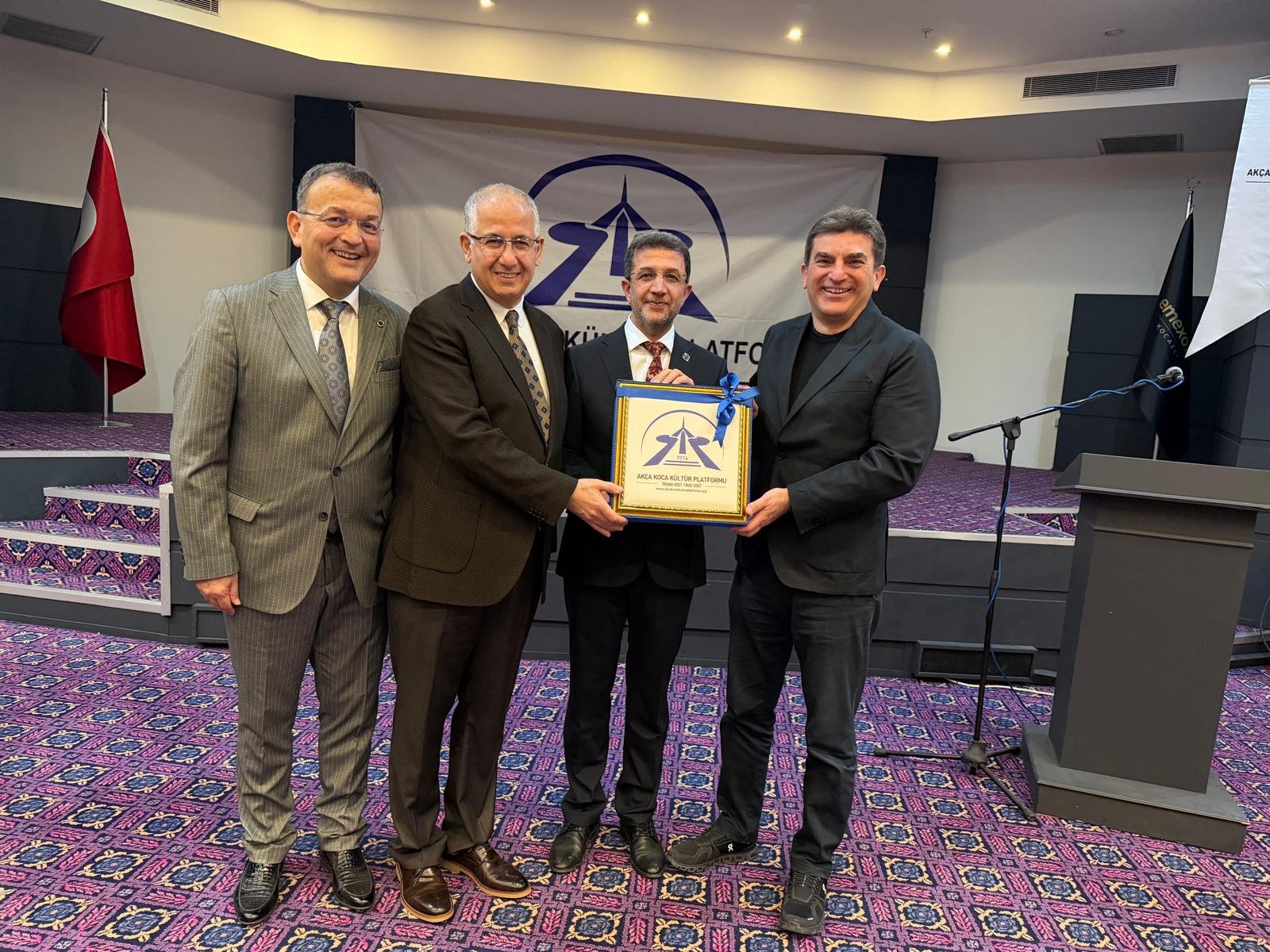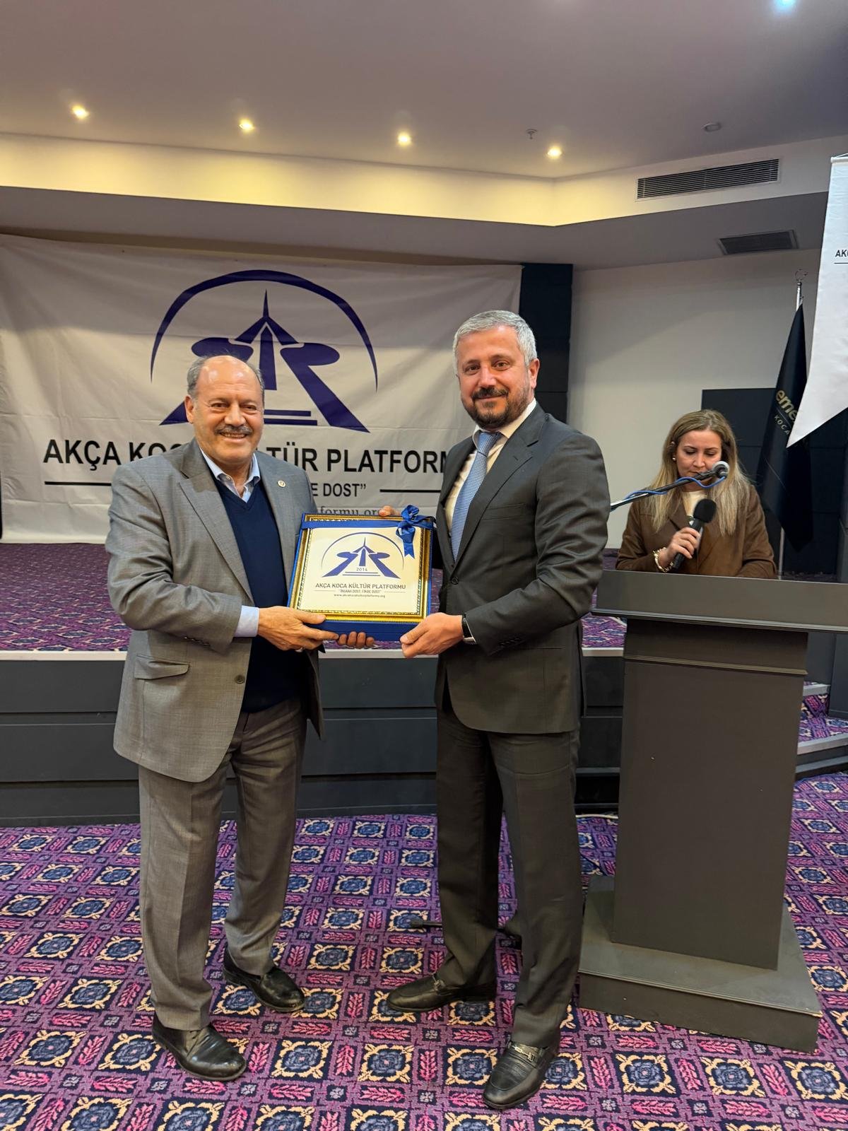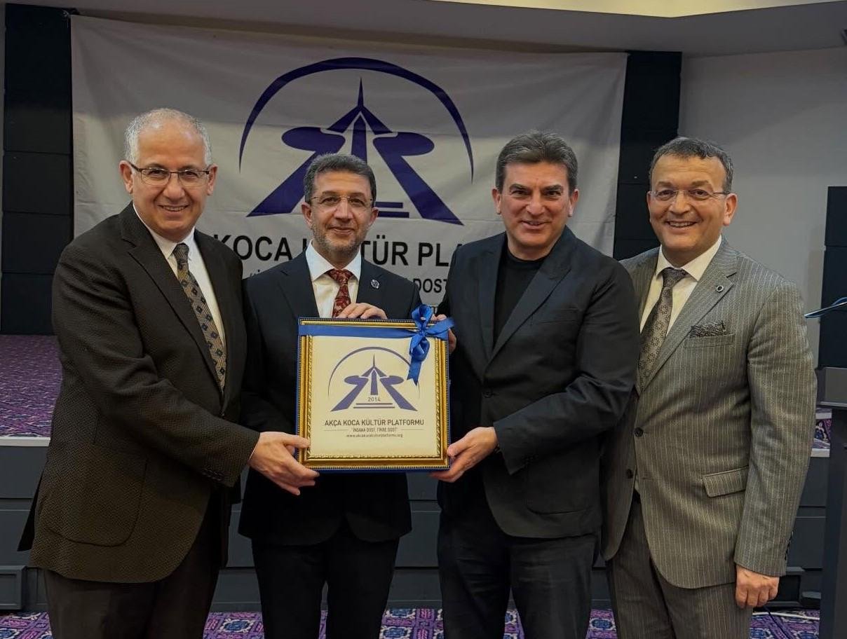 Prof. Dr. Abdürrahim Alkış'a; Prof. Dr. Abdürrahim Alkış'a; Yüksek İstişare Kurulu Başkanı Ahsen Okyar 'İnsana Dost Fikre Dost / 5 01 Ocak 2024 - 31 Aralık 2025 kitabını, günün anlam ve önemine binaen özel hediyesini Dr. Halil İbrahim Kahraman, KOVİAD (Kocaeli Vizyoner İş İnsanları Derneği) ın hediyesini KOVİAD Başkanı Harun Reşit Kocagöz, Akça Koca Kültür Platformunun hediyesini Oyak Genel Müdürü Prof. Dr. Murat Yalçıntaş ve Kocaeli Üniversitesi Rektörü Prof. Dr. Nuh Zafer Cantürk plaketini de Platformun Başkanı Hasan Uzunhasanoğlu ve Kocaeli Vali Yardımcısı Dr. Mustafa Ayhan birlikte takdim etti.