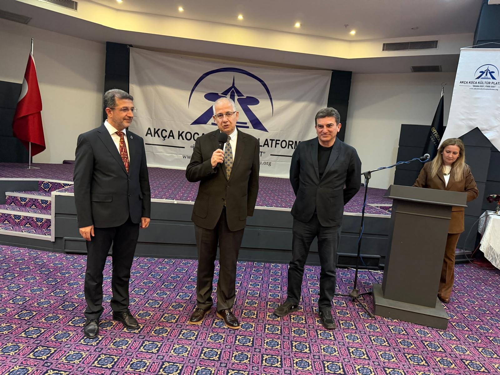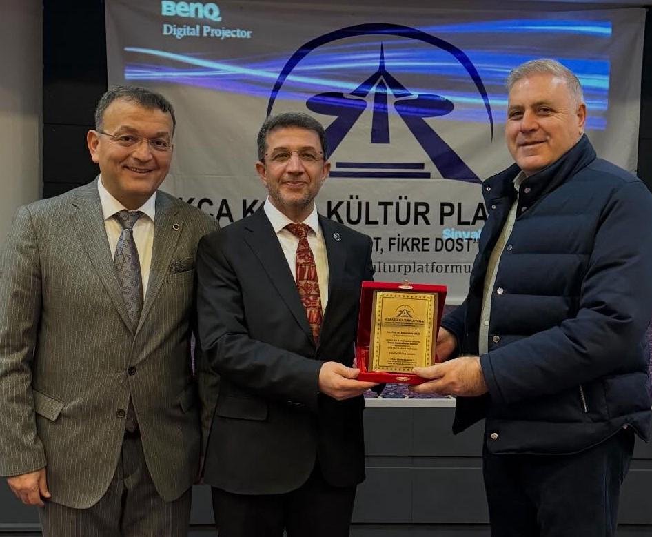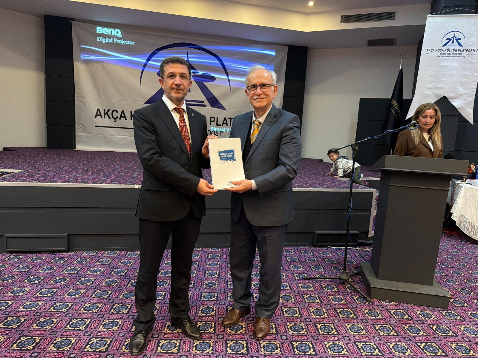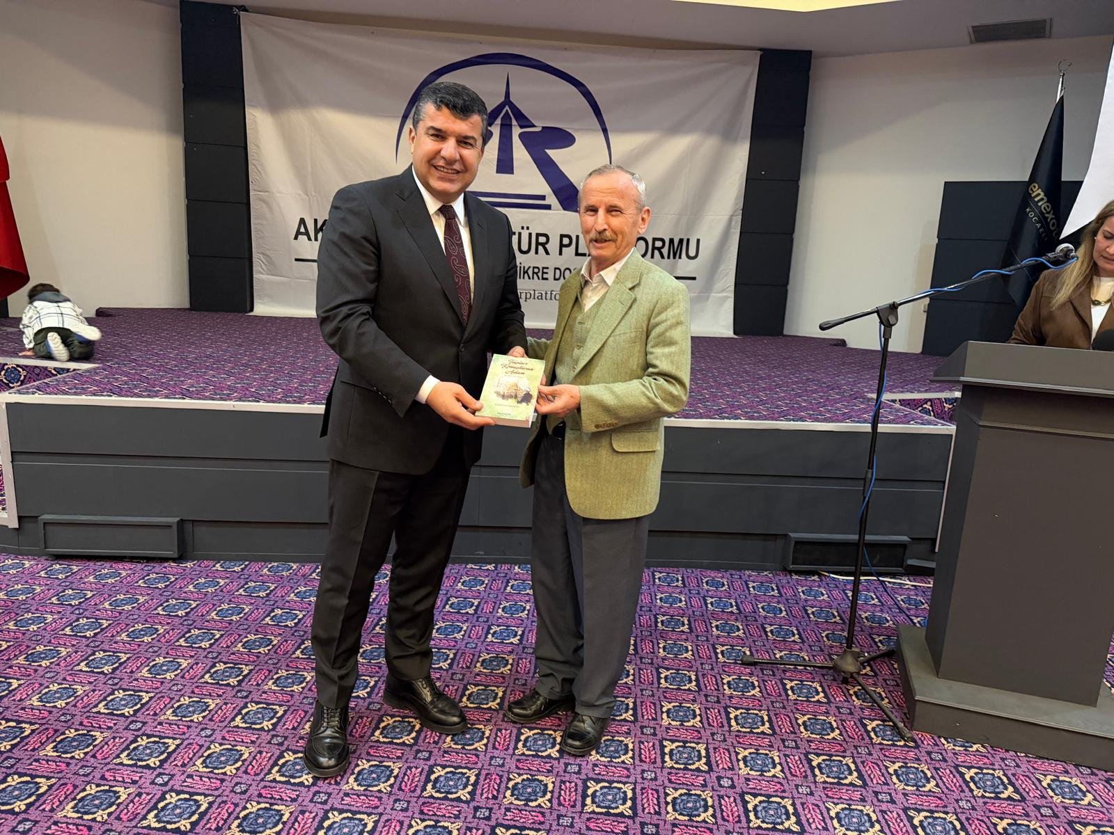 Prof. Dr. Abdürrahim Alkış'a; Prof. Dr. Abdürrahim Alkış'a; Yüksek İstişare Kurulu Başkanı Ahsen Okyar 'İnsana Dost Fikre Dost / 5 01 Ocak 2024 - 31 Aralık 2025 kitabını, günün anlam ve önemine binaen özel hediyesini Dr. Halil İbrahim Kahraman, KOVİAD (Kocaeli Vizyoner İş İnsanları Derneği) ın hediyesini KOVİAD Başkanı Harun Reşit Kocagöz, Akça Koca Kültür Platformunun hediyesini Oyak Genel Müdürü Prof. Dr. Murat Yalçıntaş ve Kocaeli Üniversitesi Rektörü Prof. Dr. Nuh Zafer Cantürk plaketini de Platformun Başkanı Hasan Uzunhasanoğlu ve Kocaeli Vali Yardımcısı Dr. Mustafa Ayhan birlikte takdim etti.