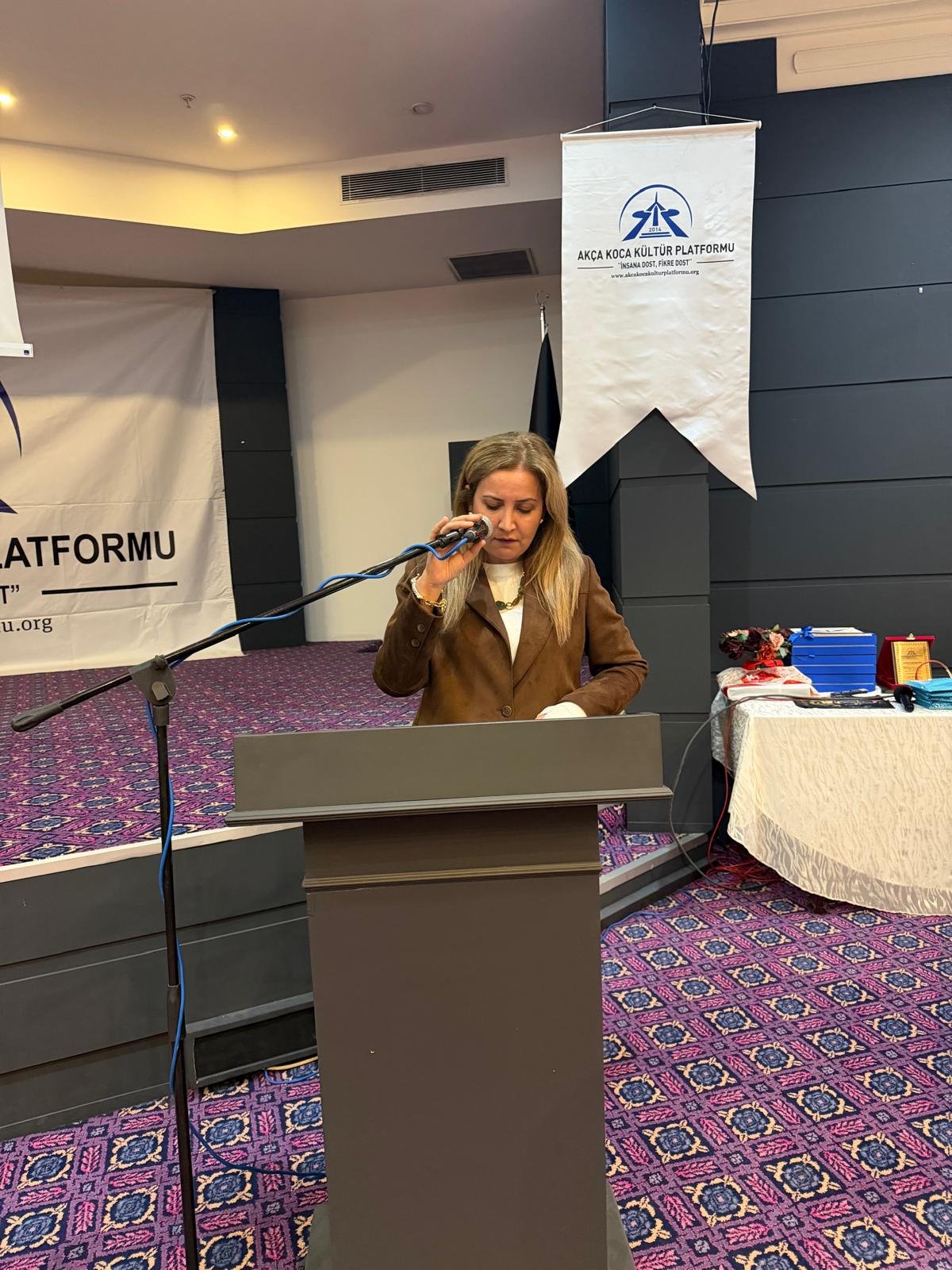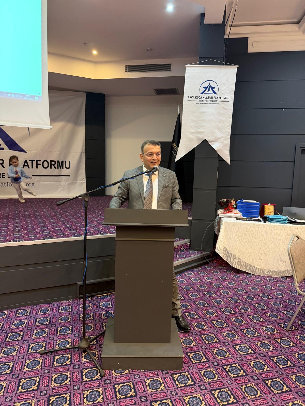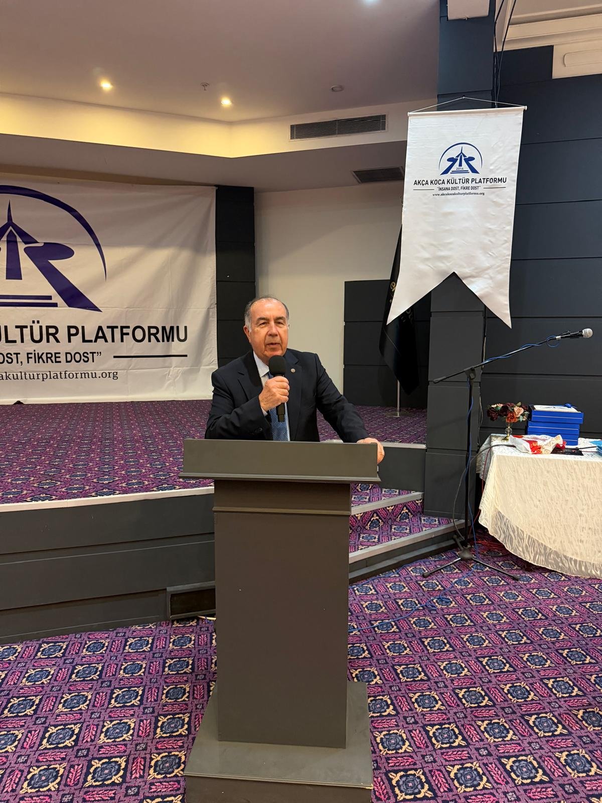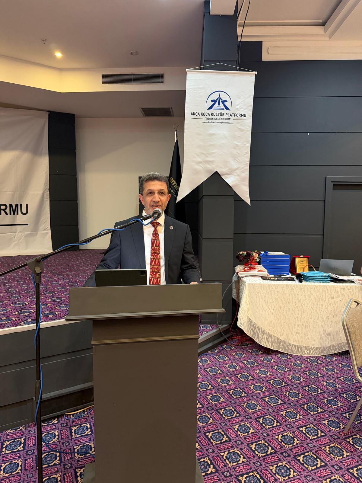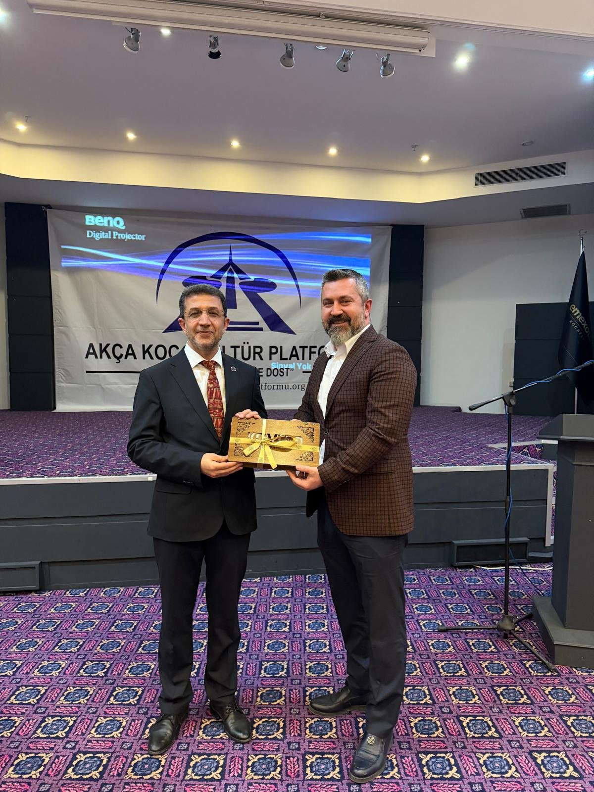 Prof. Dr. Abdürrahim Alkış'a; Prof. Dr. Abdürrahim Alkış'a; Yüksek İstişare Kurulu Başkanı Ahsen Okyar 'İnsana Dost Fikre Dost / 5 01 Ocak 2024 - 31 Aralık 2025 kitabını, günün anlam ve önemine binaen özel hediyesini Dr. Halil İbrahim Kahraman, KOVİAD (Kocaeli Vizyoner İş İnsanları Derneği) ın hediyesini KOVİAD Başkanı Harun Reşit Kocagöz, Akça Koca Kültür Platformunun hediyesini Oyak Genel Müdürü Prof. Dr. Murat Yalçıntaş ve Kocaeli Üniversitesi Rektörü Prof. Dr. Nuh Zafer Cantürk plaketini de Platformun Başkanı Hasan Uzunhasanoğlu ve Kocaeli Vali Yardımcısı Dr. Mustafa Ayhan birlikte takdim etti.
