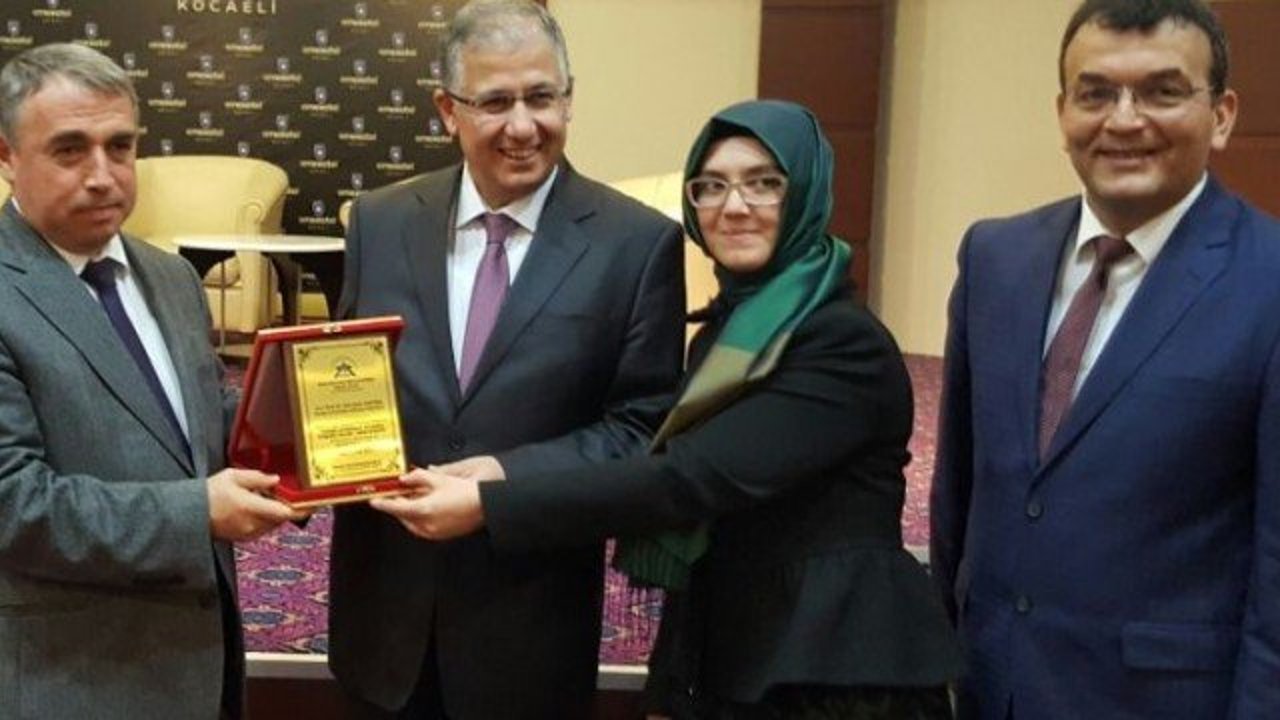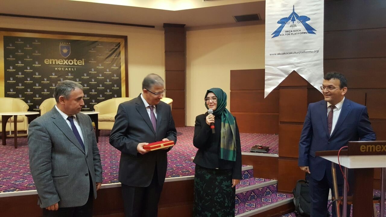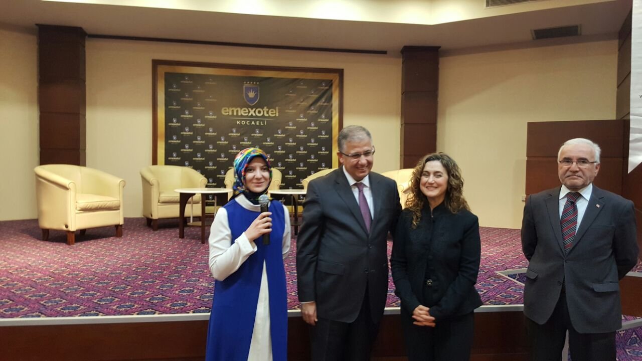 Soruları cevaplayan Prof.Dr. Nuh Zafer Cantürk'e, Körfez Kaymakamı Dr. Hasan Hüseyin Can ve Dr. Fatma Emre Turan Taşolar tarafından plaketi takdim edildi.