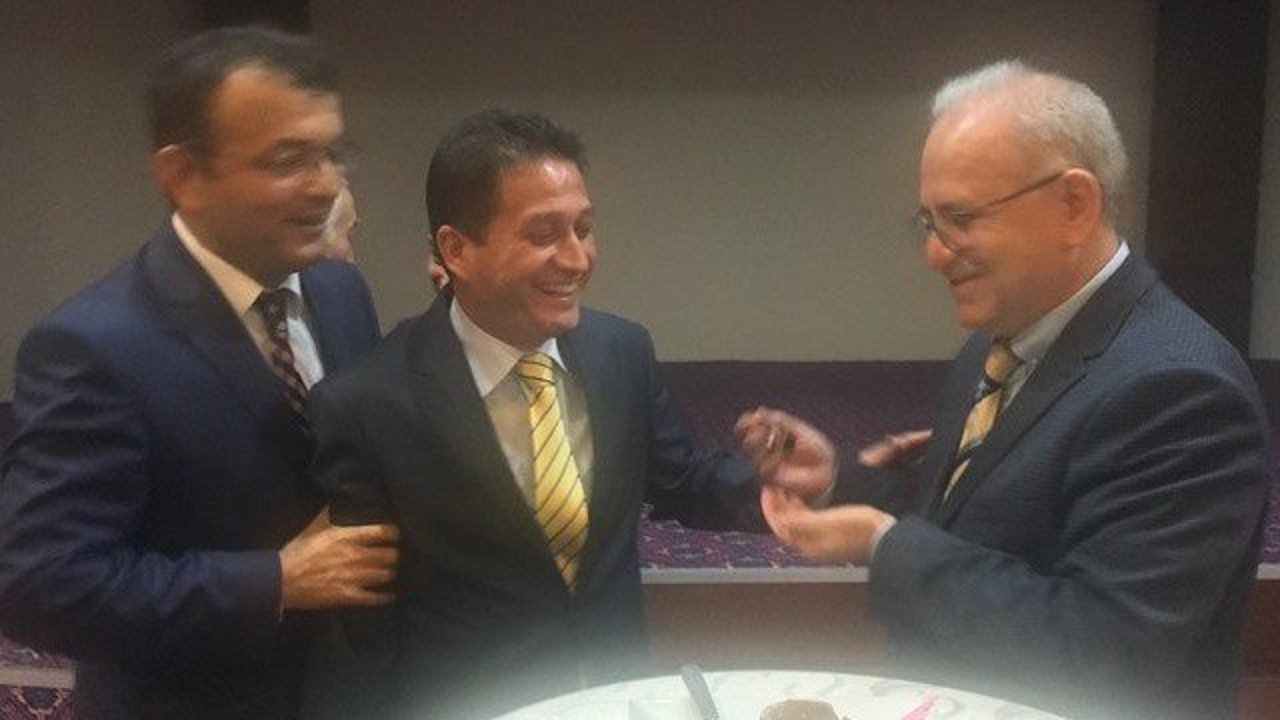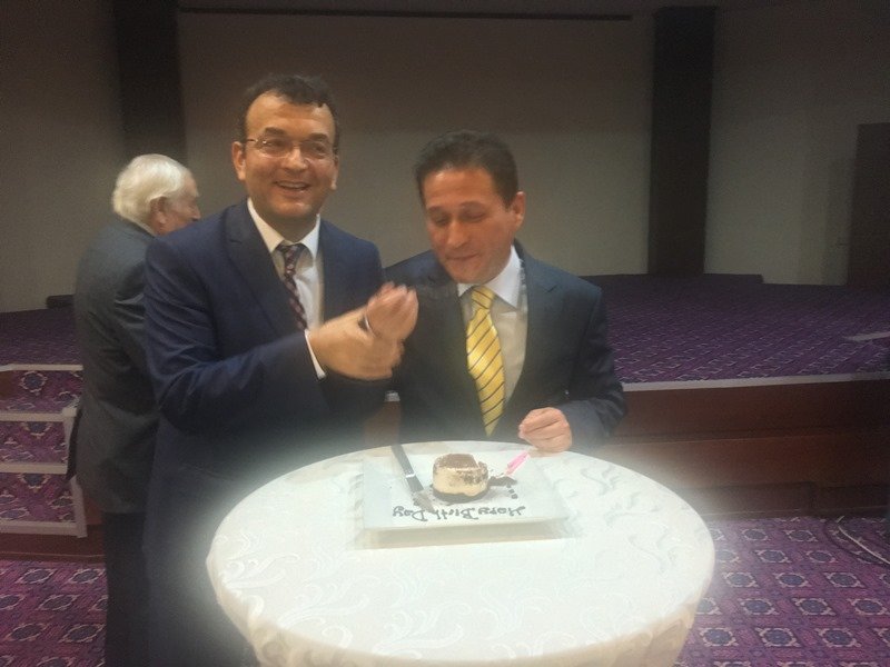 Program bitti derken salona üzerinde mumları olan bir pasta geldi. Akça Koca Kültür Platformu Başkanı Hasan Uzunhasanoğlu'nun hazırlattığı sürpriz yaşgünü pastasını Kocaeli Kandıralılar Derneği Başkanı ve Sakarya Üniversitesi Mühendislik Fakültesi Öğretim Üyesi Prof. Dr. Mehmet Bayrak kesti.