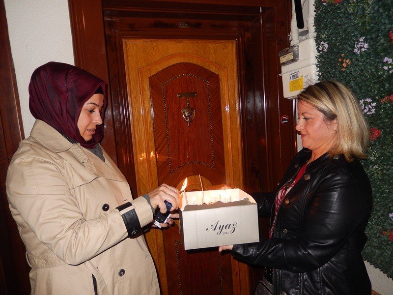 Neşe içinde pastayı kesen Prof.Dr. İzmit'ten gelen Akça Koca Platformu üyelerine teşekkür etti.