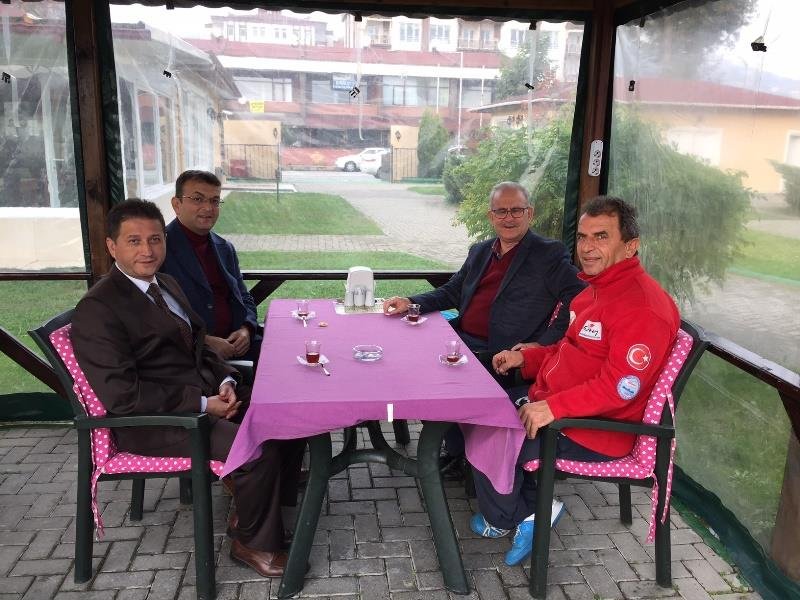 Akça Koca Kültür Platformu Başkanı Hasan Uzunhasanoğlu, Mali Müşavir Ahsen Okyar ve SAÜ Öğretim Üyesi Prof. Dr. Mehmet Bayrak, uzun yıllar Seka İzmit Müessesesinde İtfaiye Amirliğinde çalıştıktan sonra 2000 yılından bugüne Tenis Hocası olarak dersler vermekte olan Recep Özkul'u Kuruçeşme Plaj Yolu sahilindeki Marten Tenis Kulübünde ziyaret etti.