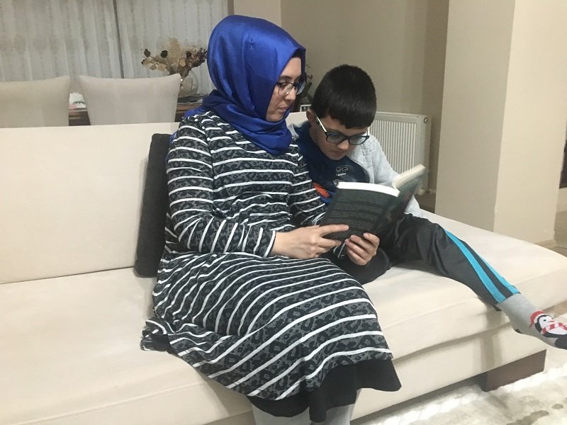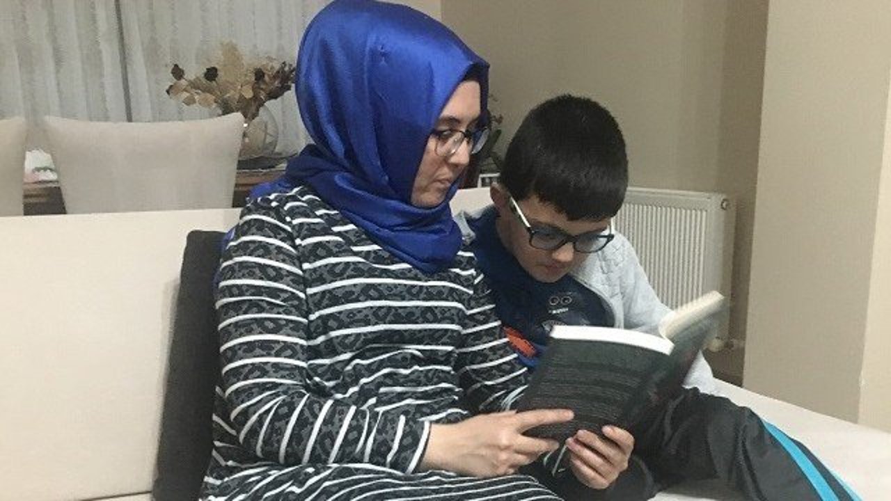 Dr. Fatma E. Taşolar, oğlu Yusuf ile birlikte, Doğa Eker'in kaleme aldığı 'Türkiye'de Genç Kız ve Kadın Olmak' kitabını elinden düşürmüyor.