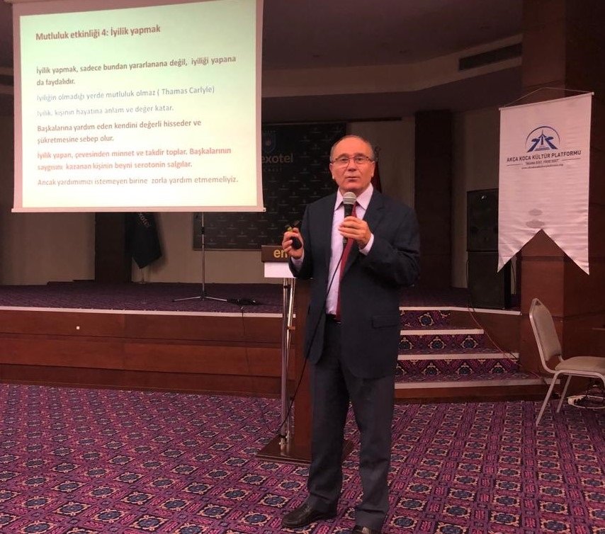 Hasan Uzunhasanoğlu Başkanlığındaki Akça Koca Kültür Platformu'nun Emex Otel'de gerçekleşen Kasım ayı yemekli toplantısında Üsküdar Üniversitesi, İnsan ve Toplum Bilimleri Fakültesi, Sosyoloji Bölümü öğretim üyesi Dr. Zülfikar Özkan, 'Nasıl Mutlu Olabiliriz?' konusunda bilgi verdi.