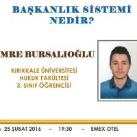 Kırıkkale Üniversitesi Hukuk Fakültesi 3.sınıf öğrencisi Emre Bursalıoğlu, Akça Koca Kültür Platformu Gençlerle Başbaşa Programın dördüncü konuşmacısı olacak ve “Başkanlık Sistemi Nedir?” konusunda bilgi verecek.