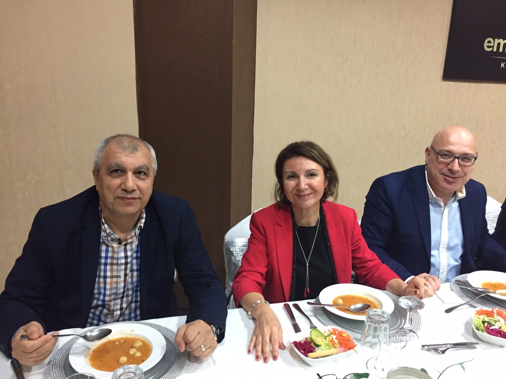 Toplantıya; Hasan Kalkavan eşi Hatice Hanım, Mehmet Uysal eşi Hülya Hanım, Sinan Büyük eşi Fatma Hanım ile birlikte katıldı.