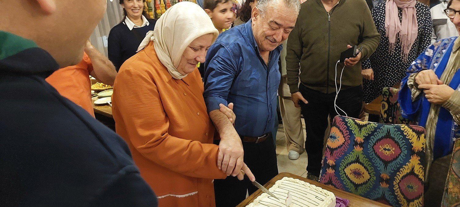 Av. Necati Özlü ve eşi Emine Özlü Akşam yemeği sonrasında kendileri için hazırlanan 45. evlilik yıldönümü pastasını kestiler