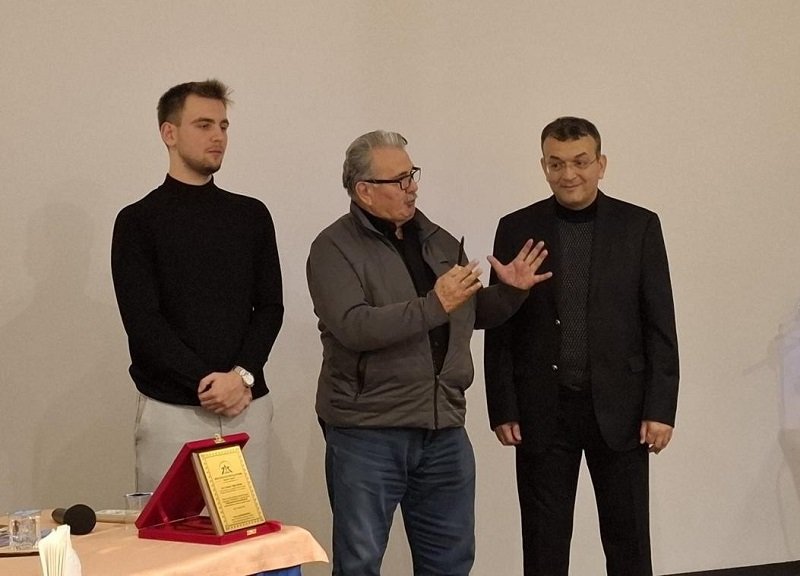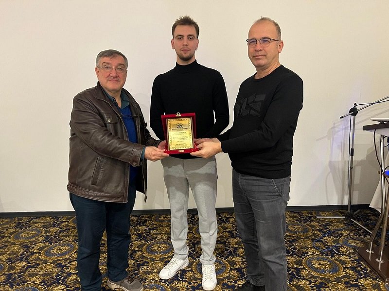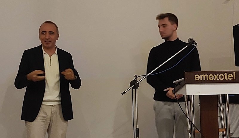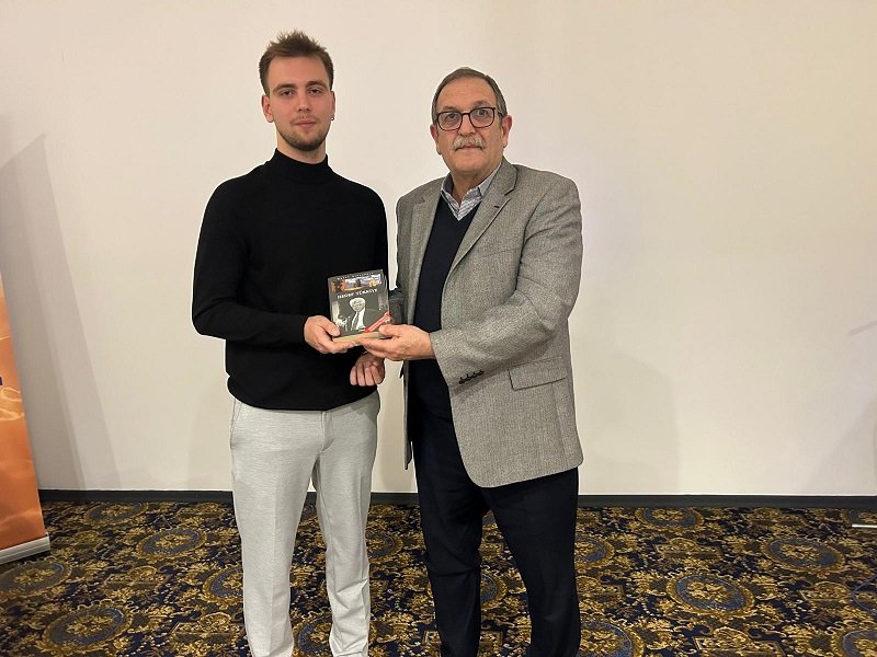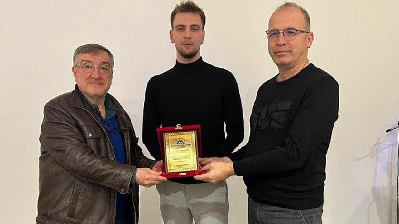 Özel Marmara Hastaneleri Yönetim Kurulu Başkanı Esener Maçil ve Biz Kandırayız Platformu Sözcüsü Aygün Aynagöz birlikte Kerem Yiğit Okyar'ı tebrik ederek plaketini sundu.